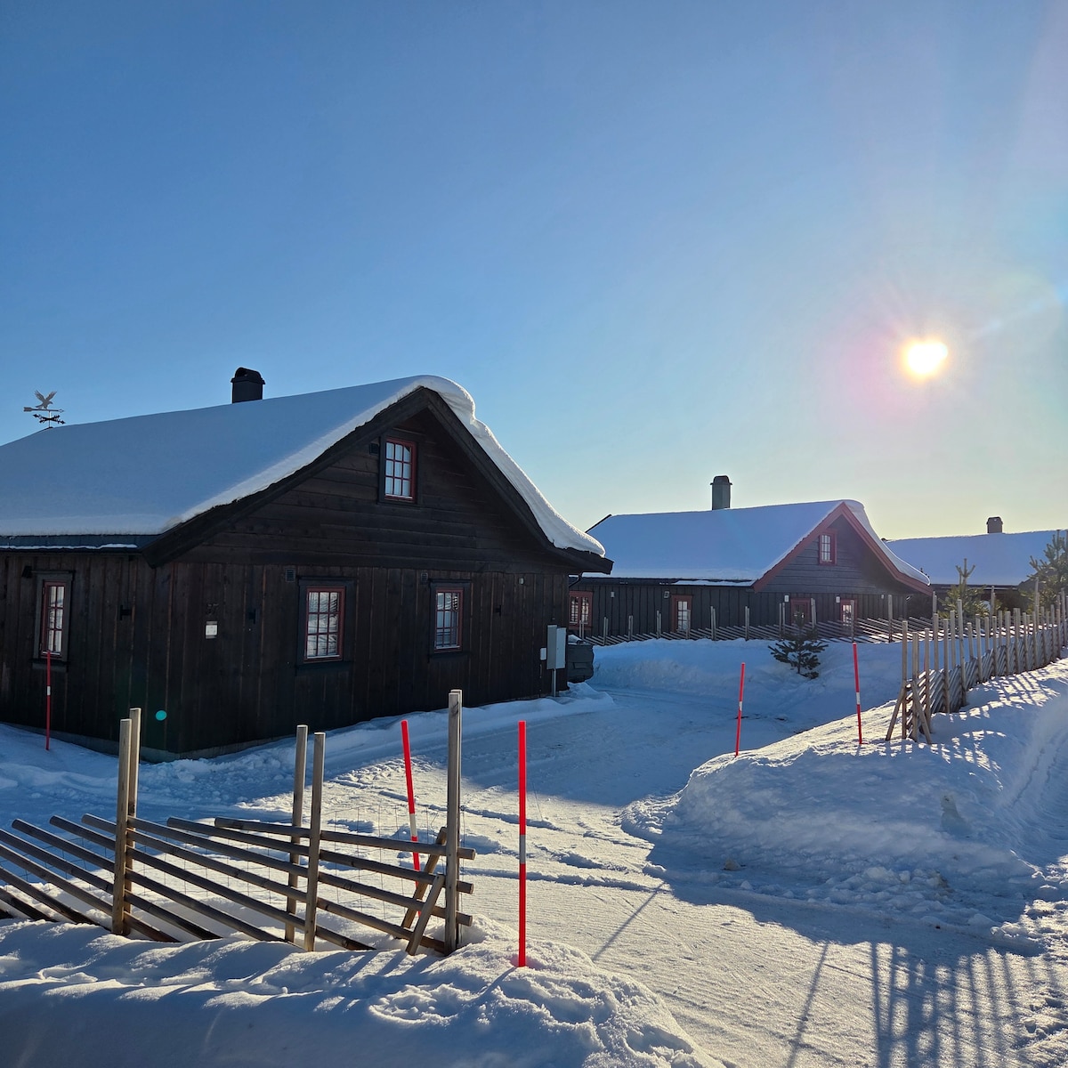 Veslekoia is a small cabin with nostalgic interior and charm. It is only 39 square meters in size and was built in 1963. There is no running water or electricity, but there is solar power that generally provides enough energy to charge phones. There is an outbuilding with firewood and an outdoor toilet. The cabin is located in a quiet and older cabin area. Skiing paradise and hiking opportunities can be found right outside the door.