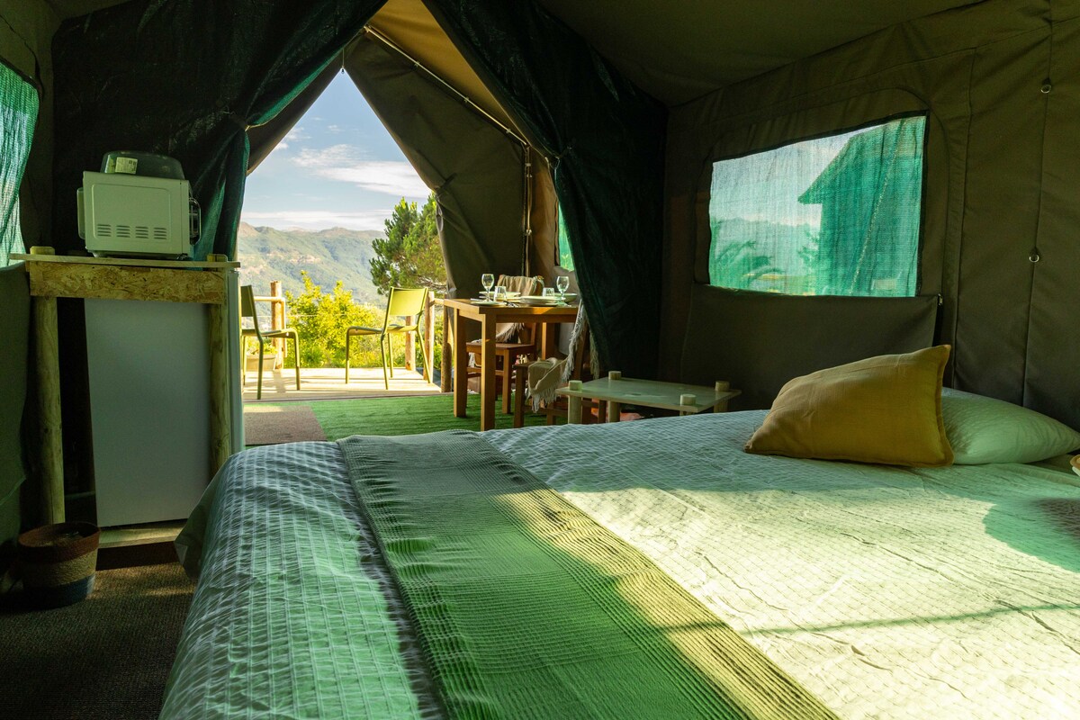 Toto místo je zvláštním místem díky výhledům na moře a západu slunce nad panoramatem Atlantského oceánu. Můžete relaxovat ve stínu velkých stromů, u potoka, a slyšet zvuk vody, jak projdete přes malé vodopády zde. Uvnitř stanů můžete cítit zvuky přírody a zároveň se cítit velmi pohodlně. Můžete si také vychutnat bazén ve tvaru jezera s vodopádem obklopeným přírodními kameny. Spojuje la naturaleza en esta escapada inolvidable.