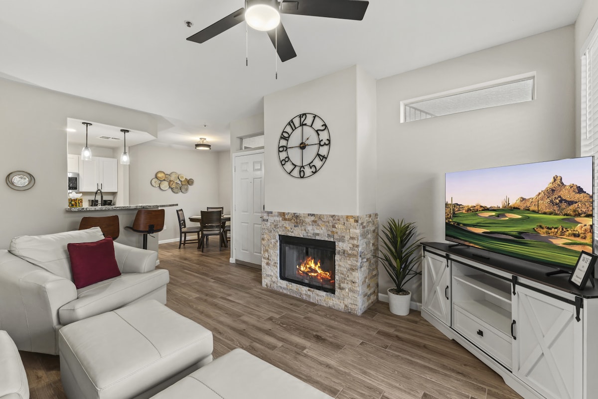 Experience Scottsdale in a spacious luxe condo with spectacular vibes and amenities. The Unit: → Lightning Fast Wi-Fi → Dedicated workspace + Monitor → Comfortable King Bed → 60" Living Room TV + Netflix → 55" Bedroom Room TV + Netflix → Fully Stocked Kitchen → Washer & Dryer → Private Parking 5 Star Amenities: → Resort Pool and Jacuzzi → Cabanas and Lounges → Full Size Gym Ideal for business travelers and corporate clients looking to experience the rich culture of Scottsdale in style.