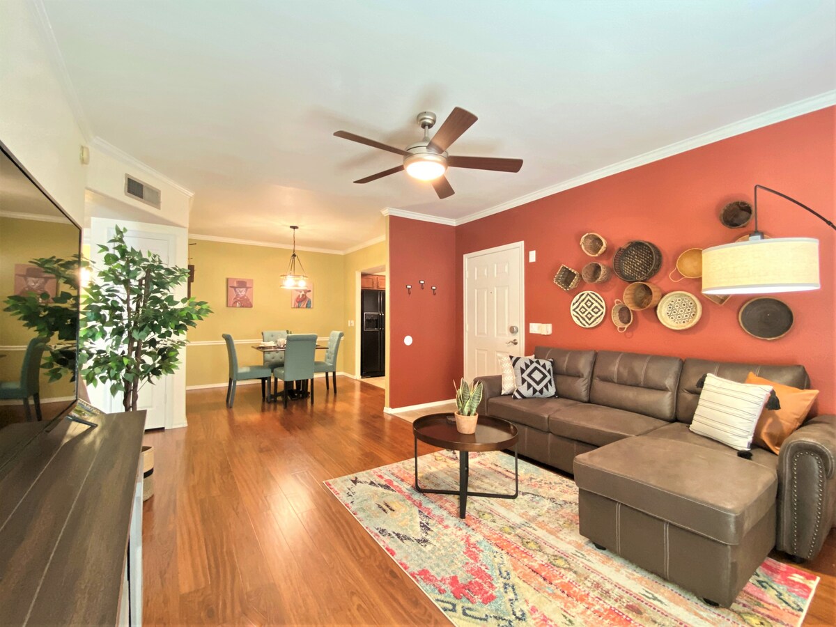 Prostory: Vítej v Palm Paradise, tvém relaxačním útočišti v srdci Starého města Scottsdale. Tento byt, zrekonstruovaný v říjnu 2024, kombinuje stylový pouštní boho design se všemi vymoženostmi domova a vytváří tak prostor, který je krásný a funkční. Odpočiň si na útulné sedací soupravě z elení kůže, která je ideální na zdřímnutí, nebo vyjdi na soukromý balkon a vychutnej si nádherný výhled na západ slunce nad horou Camelback. Vstup do klidné ložnice s velkou manželskou postelí a vysoce kvalitním povlečením.