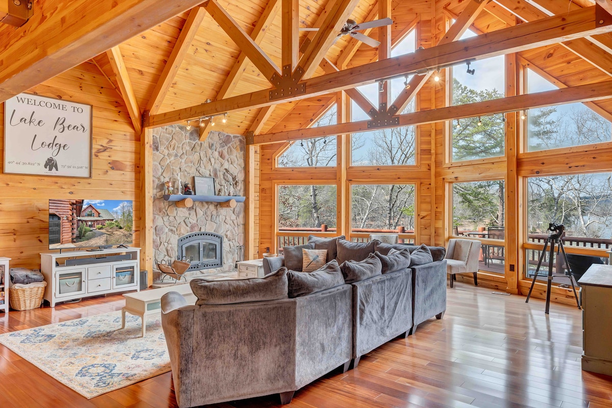 Vítej v rodině Lake Bear Lodge! Soukromé letovisko o rozloze 5 400 metrů čtverečních s nádherným výhledem: * Apartmá s manželskou postelí King * 6br, 5 koupelen * Masivní herna! ~21 Arkády!!! ~75palcová TV ~Ping Pong ~2-player B-ball ~Kulečník ~Shuffleboard ~Bar w BT Speaker * Masivní hlavní obývací pokoj s 70palcovou TV * Soukromý přístav * Ohniště * Naložená kuchyně s kávovarem * Obrovská terasa * 2 stíněná veranda (1 v hlavní místnosti) * 6 kajaků, paddleboat * 2 paddleboardy k pronájmu, zeptej se na cenu * Vířivá vana * Plynový gril