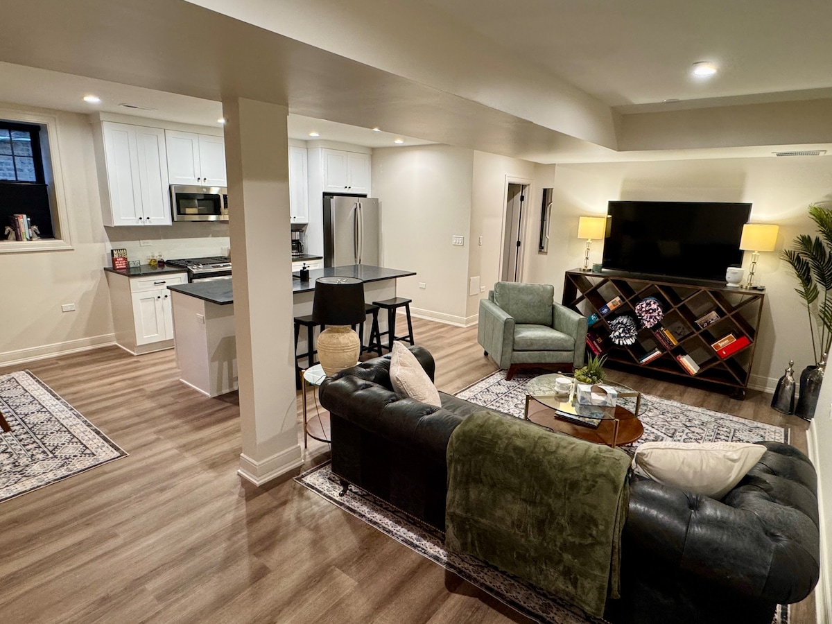 Stylish, centrally-located getaway perfect for a visit to the Windy City! This charming space was freshly renovated in early 2022 with ample space (nearly 1500 sq ft), a Peloton exercise bike, and kitchenette. Located in the trendy Southport Corridor blocks from the best of Chicago's north side; shopping, fine dining, bars, Wrigley Field, close to Brown line train public transit with Whole Foods at the end of the block!