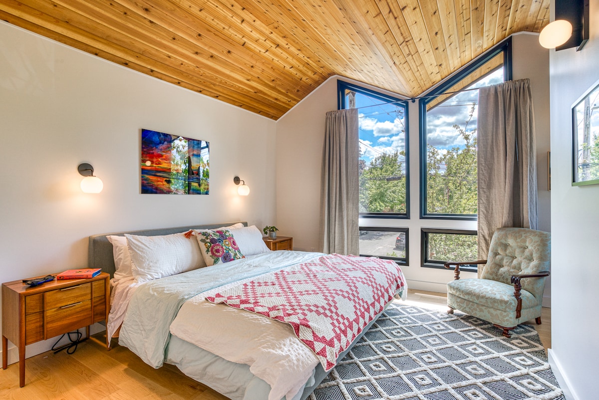 Vychutnej si skutečnou portlandskou atmosféru v horním patře tohoto KRÁSNĚ a KOMPLETNĚ zrekonstruovaného LUXUSNÍHO dědictví duplexního domu. Navrženo tak, aby vyhovovalo modernímu životu. Soukromý vchod přes společnou předsíň, kuchyně šéfkuchaře, klimatizace, DW, silné Wi-Fi, přední nakládka W/D, kalifornské skříně v obou BR. Nová 4K chytrá televize v hlavní ložnici a skvělý pokoj. Dokonalý spánek na luxusních postelích velikosti king nebo queen. Nachází se v úžasné oblasti Alberta Arts / Concordia. Blízko všeho. Skóre 86 za pěší dostupnost a 80 za dostupnost na kole.