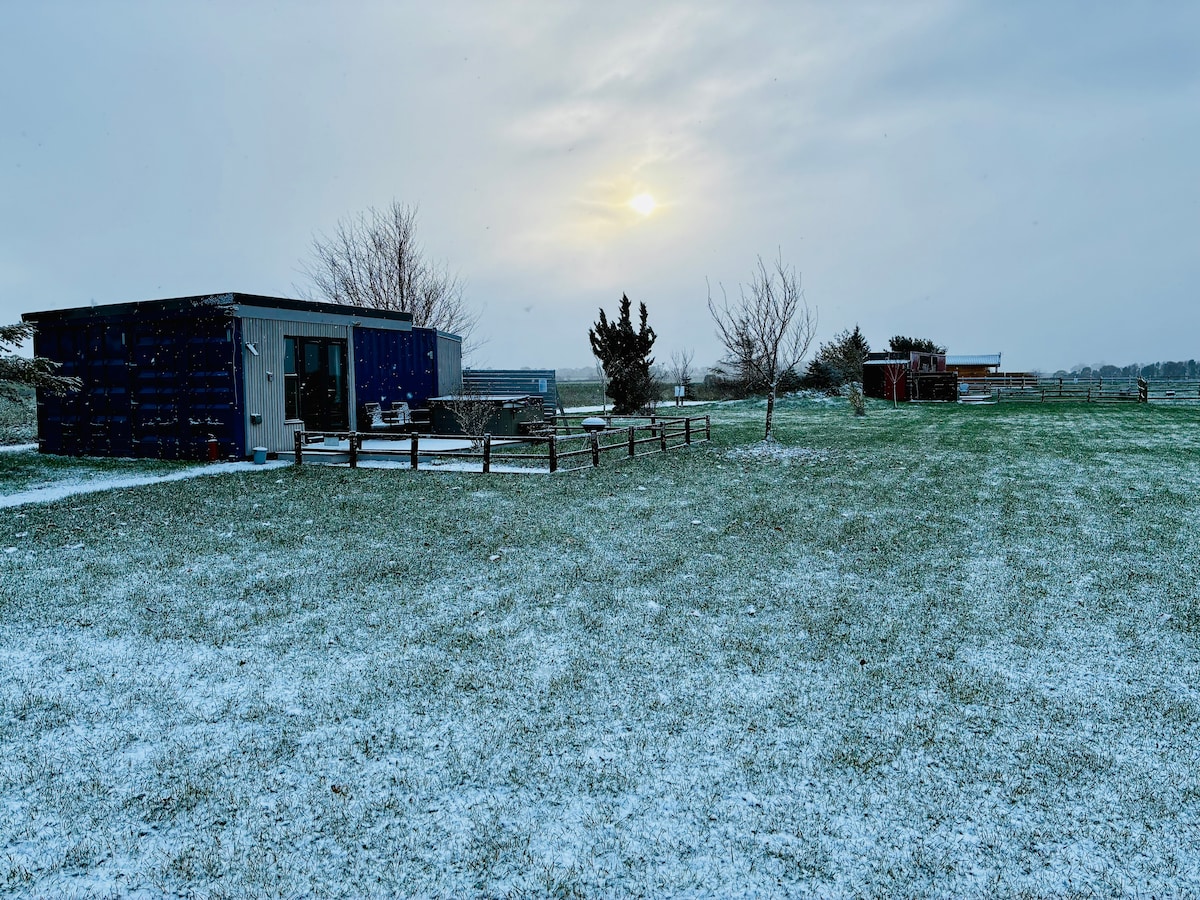 Útulný přepravní kontejner a vířivka Aberystwyth