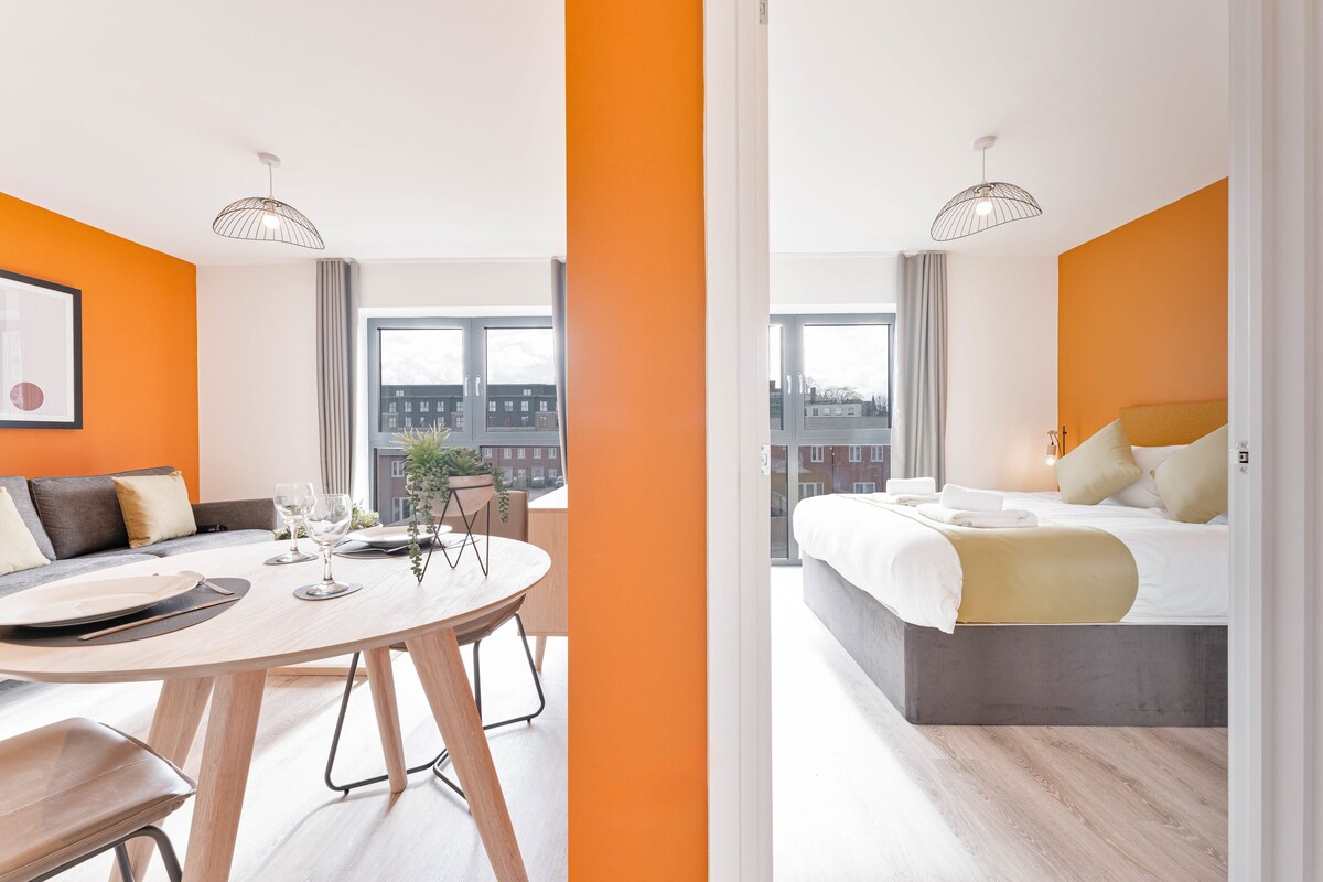 Užij si luxus moderního bydlení v tomto ohromujícím jednolůžkovém apartmánu v centru města. Kompletní s plně vybavenou kuchyní, další rozkládací pohovkou v obývacím pokoji a ohromující moderní koupelnou s velkou procházkou ve sprše. Bezplatné parkování, posilovna, střešní terasa a šachovnice v životní velikosti jsou zahrnuty v ceně pobytu, zatímco se nachází v srdci Nottingham 's Lace Market. Kousek od náměstí Market Square, Ice Stadium a pár minut jízdy od fotbalového stadionu Nottingham Forest.