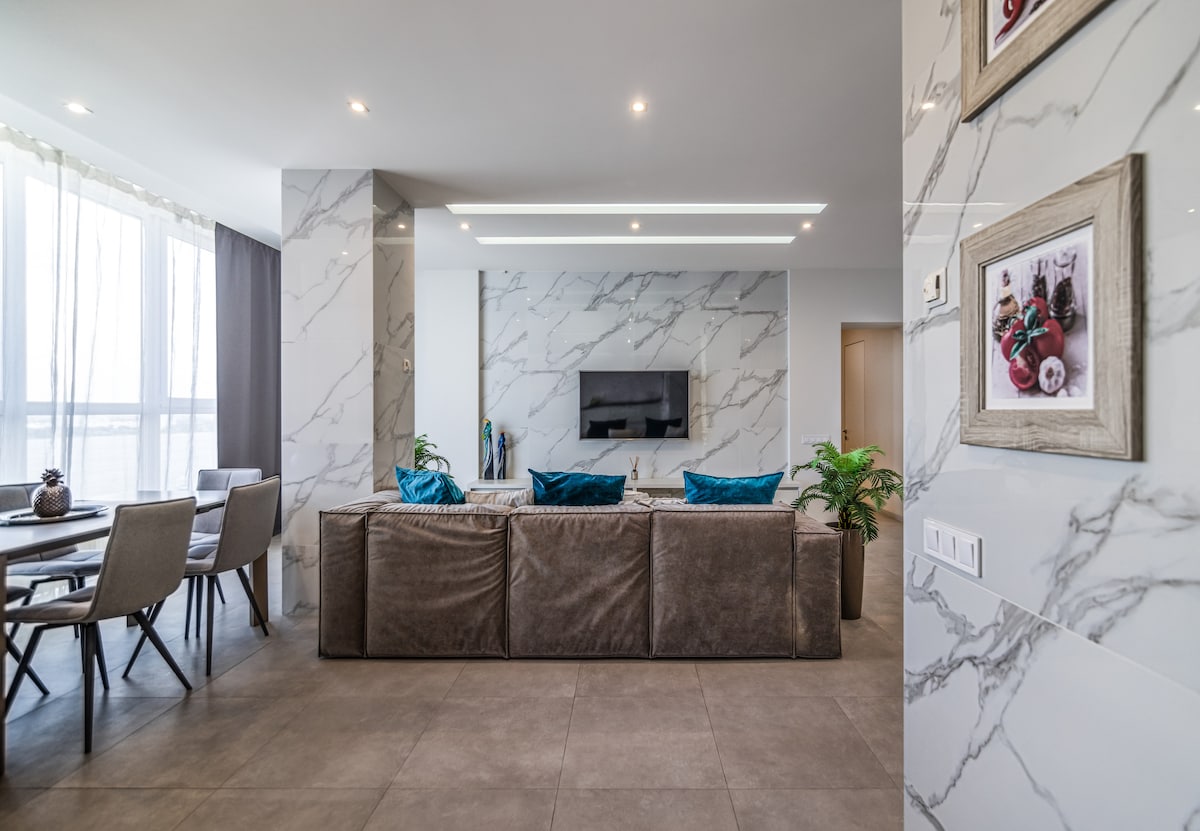 Nabízíme pět chytrých bytů s autorskou rekonstrukcí v roce 2019, které se nacházejí ve 12. patře v nové budově . Pod domem je supermarket ATB a McDonald's je co by kamenem dohodil. Vorontsov Park a Vorontsovsky Beach pro procházky a relaxaci. Bus stop from which you will go to any direction of the city. 5 minutes and you are in the center of the Dněper. Vedle domu je parkoviště. Sněhově bílé ložní prádlo. Uvítáme tě s respektem a pohostinností a odpovíme na všechny otázky. Čekáme na tvoji návštěvu)