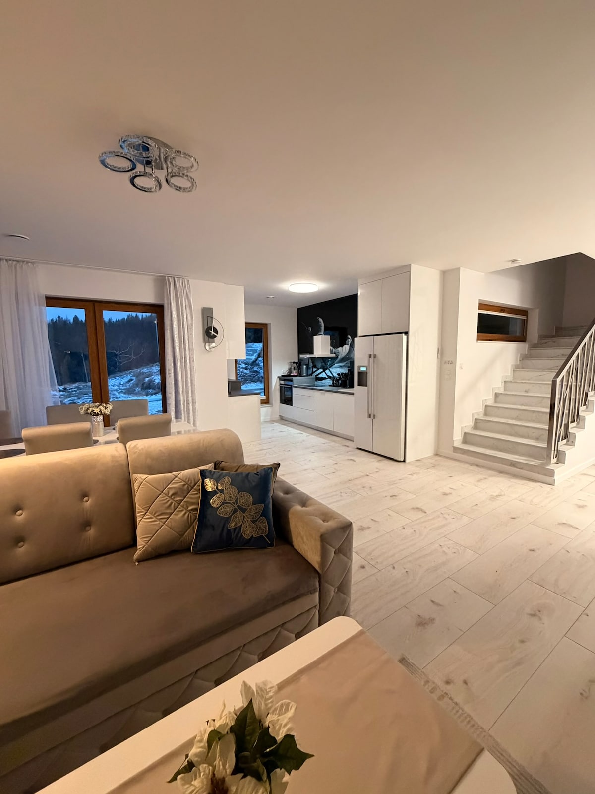 Nabízíme vám nezapomenutelný pobyt v luxusním domě Czarne Wierchy Premium 1, který se nachází v malebném Zakopaném, s vlastním SPA vybaveným finskou saunou, stupňovou věží a vířivkou. Tento pohodlný domov poskytuje pohodlné ubytování pro 6 osob ve 3 elegantních ložnicích. Dům potěší svým designem, kterému dominuje přírodní dřevo, designový nábytek, stylové doplňky inspirované horskou tradicí a útulné materiály.