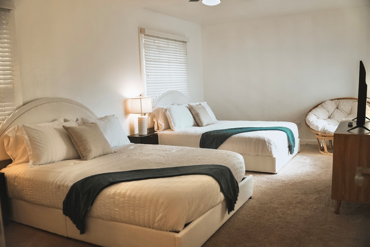Zažijte Houston v prostorném moderním bytě se skvělou atmosférou a vybavením. Jednotka: → Bleskově rychlá wifi → Pohodlná manželská postel → Vyhrazený pracovní prostor + monitor → 55" chytrá televize v obývacím pokoji → 50" Smart TV v ložnici → Plně zásobená kuchyně → Pračka a sušička → Soukromé parkoviště (parkujete na vlastní riziko) Vybavení: → Výhled a salonek → Bazén + lázně → Plnohodnotná posilovna Ideální pro návštěvníky Texas Medical Center, zdravotnické stážisty/pracovníky, cestovní sestry a hosty na služební cestě.