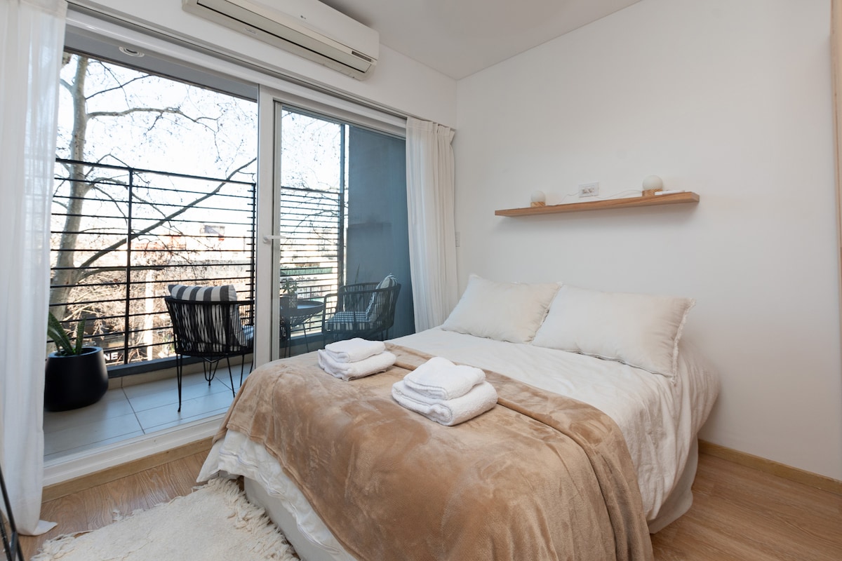 Increible y hermoso monoambiente luminoso con balcon totalmente equipado para 4 personas. Este encantador apartamento tiene todo para que disfrutes tu estadia de forma confortable !!! Posee un sommier de 2 plazas y un sillon/sofa cama para 2 personas. Amoblado con diseño, encanto y buen gusto. Aire acondicionado frio/calor, TV HD/cable, WI FI. Rapido acceso a los principales puntos de la ciudad, subterraneo linea D, Tren Mitre, Metrobus, centros comerciales y gastronomicos.