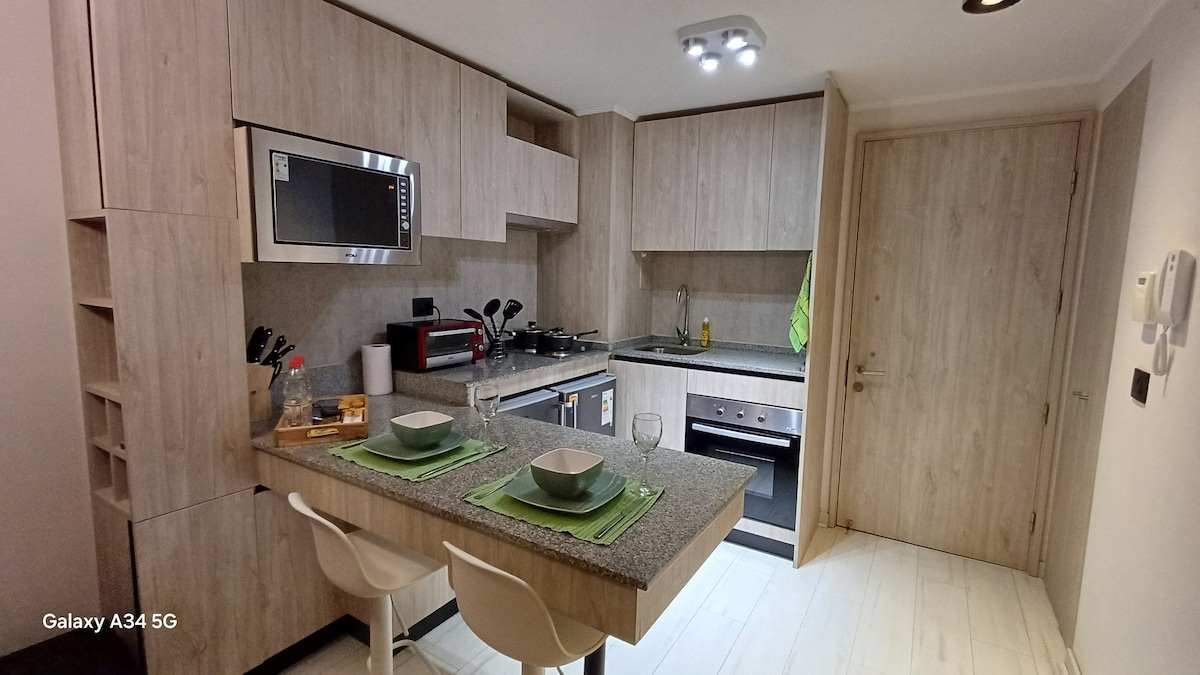 Užij si moderní, světlý a pečlivě zařízený byt. Je plně vybaven pro pohodlné pobyty, má dvoulůžko, rozkládací pohovku, integrovanou kuchyň, chytrou televizi, WiFi a balkon s jasným výhledem. Nachází se v bezpečné a propojené oblasti Santiaga, ideální pro odpočinek nebo práci. Příjemné, funkční ubytování s důrazem na každý detail, díky kterému se budeš cítit jako doma. Vynikající lokalita: v blízkosti Plaza Ñuñoa a Mall Portal Ñuñoa, sportovních center. S dobrou dopravou.