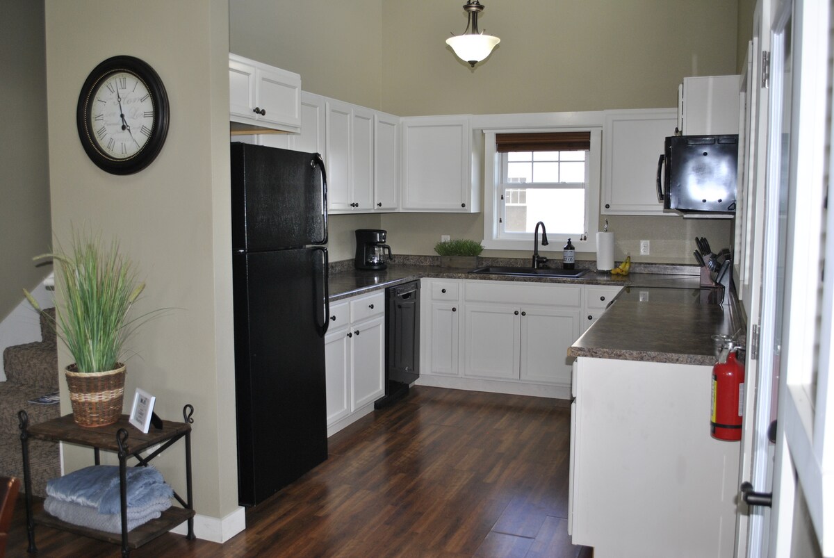 Duplex postavený v roce 2016, každá jednotka má svůj vlastní oplocený dvůr, pračku/sušičku, mikrovlnnou troubu, klimatizaci. Horní jednotka má 2 lůžka, 1 koupelnu, postel queen Temperpedic v hlavní ložnici a dvojitou patrovou postel v druhé ložnici, koženou pohovku, stůl a židle na terasu, ohniště. 10 minut do škol, nemocnice a pečovatelského domu Chamberlain. Méně než 5 minut na mezistátní dálnici I-90 a dálnice vedoucí do Chamberlainu a Ft. Thompson. Tato jednotka je nahoře.