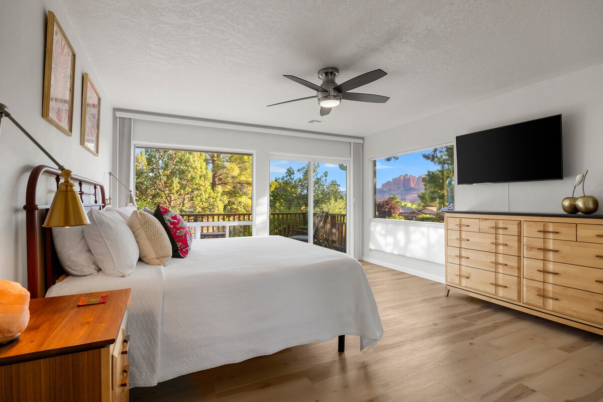 Tento umělecký klenot je méně než míli od světoznámé kaple svatého kříže (kterou musí vidět každý návštěvník Sedony) a cca 5 minut chůze od Mystic Trail! Zažij místní řemeslné detaily v tomto centrálně umístěném, stylovém, jednopatrovém domě z poloviny století s nádherným výhledem na červené skály téměř z každého pokoje! Nachází se asi 1,2 míle (1,9 km) od Cathedral Rock (považované za nejsilnější vír v Sedoně) a něco málo přes 2 míle (3,2 km) od Broken Arrow Trail a Bell Rock.