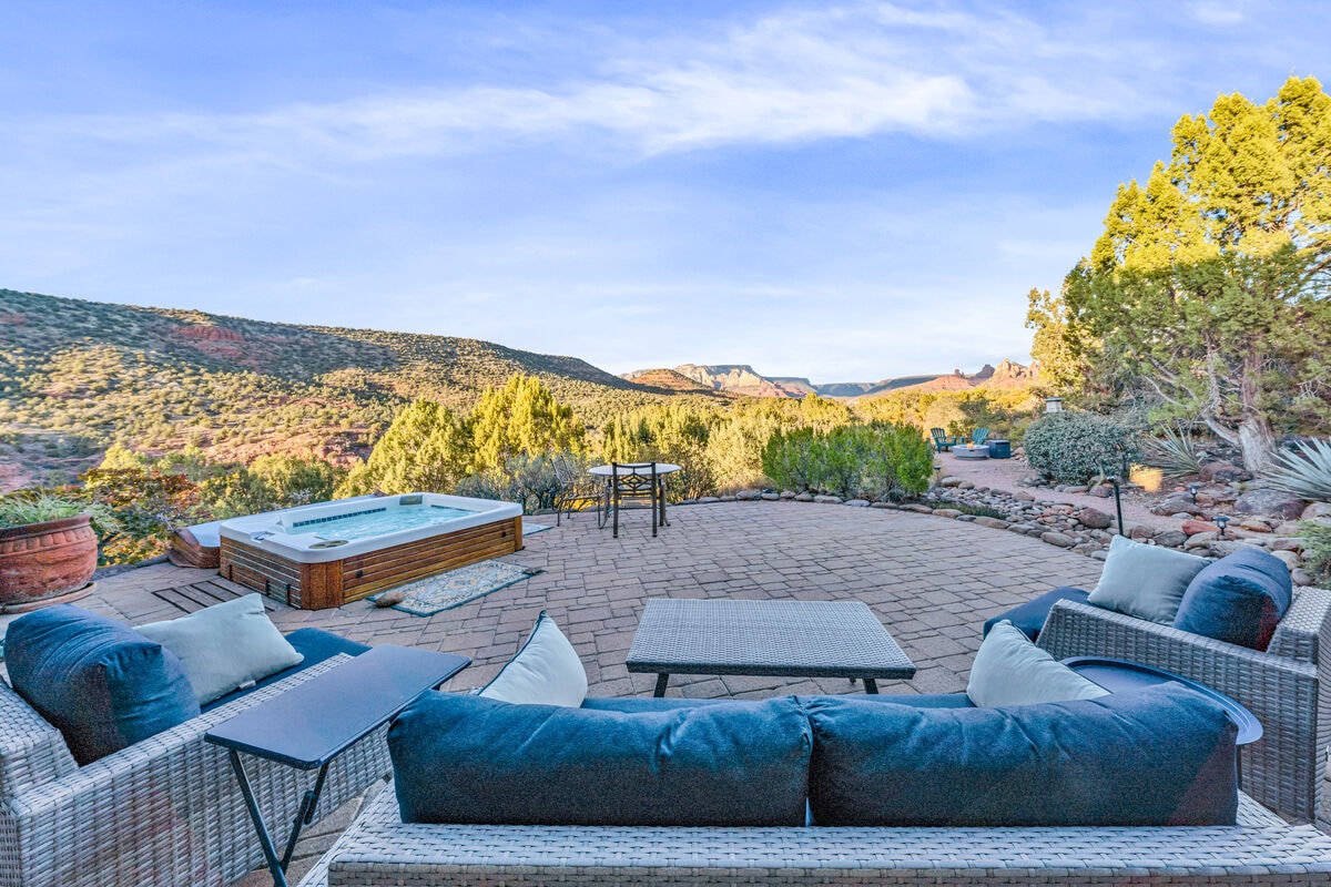 Experience an unforgettable blend of comfort and elegance in the heart of Sedona. Our home, nestled into the hillside, presents unparalleled panoramic views of the iconic red rocks, offering a stunning backdrop throughout your stay. Situated less than a mile from the charming shopping of Tlaquepaque, you'll have easy access to explore. After immersing yourself in the natural wonders of Sedona, rejuvenate in our hot tub, allowing the surrounding beauty to wash away your cares. TPT21331507-SP3256
