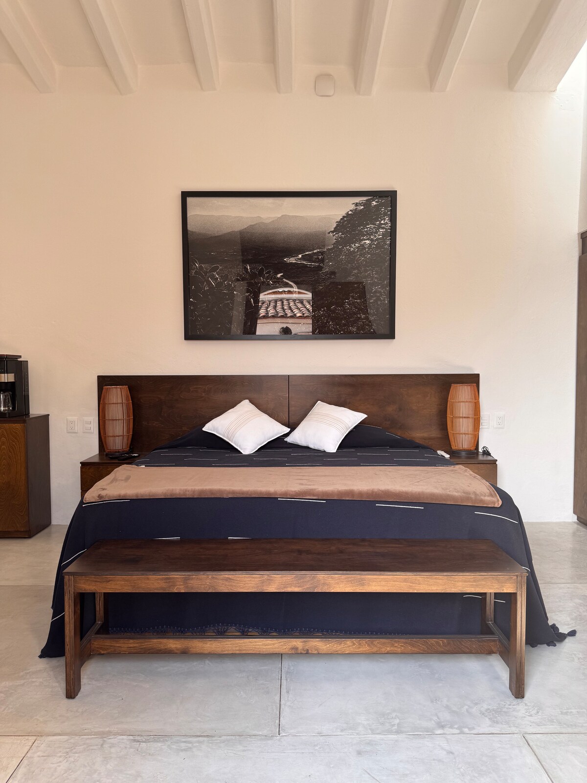 Uteč do Casa Cascada, designového ubytování nad Playa Manzanillo v Puerto Escondido. Náš butikový dům kombinuje tropický klid s moderním industriálním šarmem a nabízí bujnou zahradu, panoramatický výhled na oceán a ohromující nekonečný bazén. Ať už si chceš odpočinout, objevovat okolí nebo pracovat na dálku, tento pokoj v přízemí nabízí dokonalou kombinaci pohodlí, soukromí a místní krásy. Každodenní snídaně v ceně. 🍳