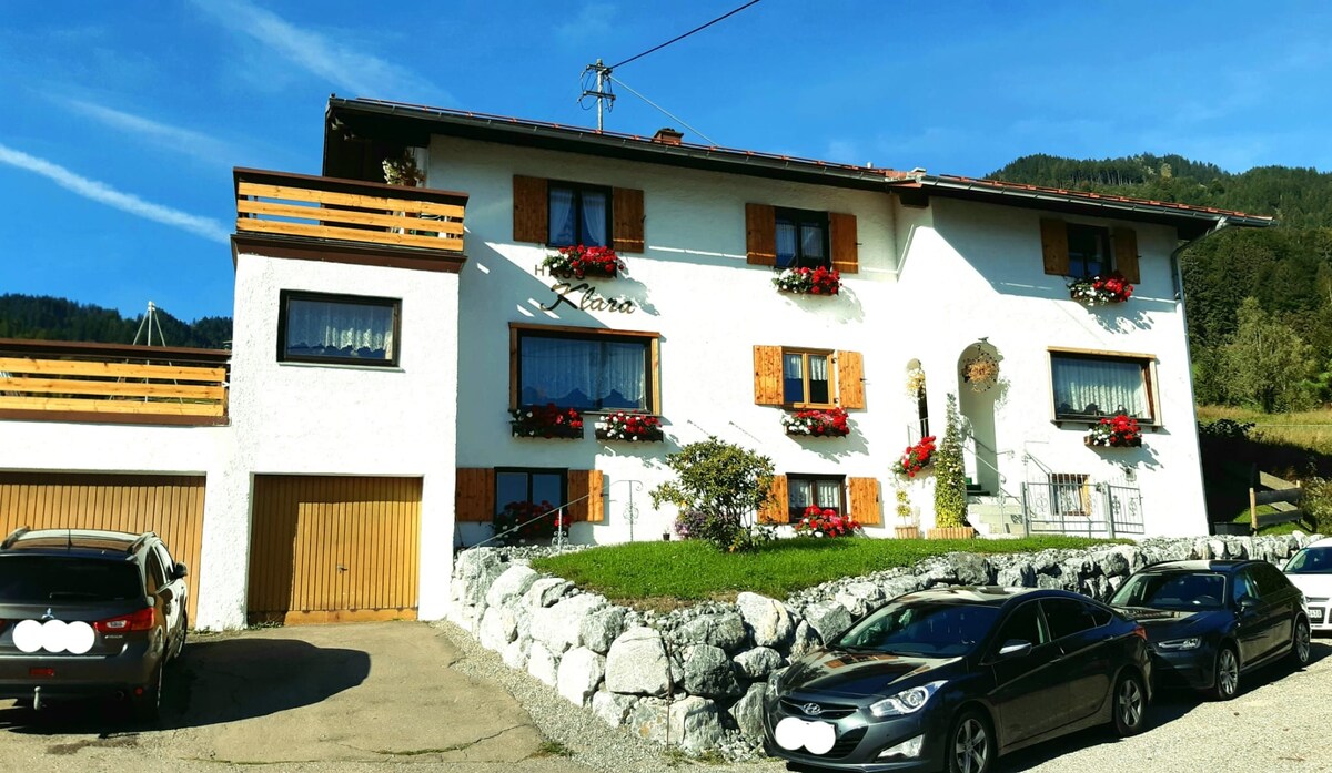 Byt o rozloze 50 metrů čtverečních byl sestaven s velkou láskou k detailům. Hlavní obytný prostor má plně vybavenou kuchyň, jídelní kout a rozkládací pohovku. Ložnice a koupelna jsou oddělené od obývacího pokoje. Venku je terasa s výhledem na hory. Dům se nachází v klidné čtvrti, přibližně 10 minut chůze do vesnice, 3 minuty do skokolí skokanského můstku a 7 minut do lyžařského vleku Nebelhorn. Je zde dostatek místa pro lyže, kola atd.