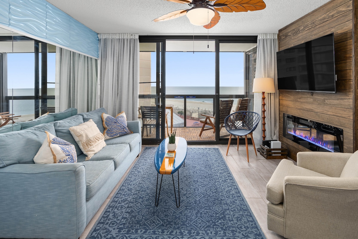 Nádherný apartmán na pláži s přímým výhledem na oceán! Tvůj prázdninový domov daleko od domova! Vše, co potřebujete, přímo na pláži. Veškeré ložní prádlo, zásoby a dobře zásobená kuchyň! Nová 65" TV s bezplatným 4K Netflixem! Moderní klidný dekor v srdci Orange County! Chceš se dostat ven? Užijte si Seacrets, Mackey's, Fager's Island, Subway, Candy Kitchen nebo Dumsers' Dairyland v dosahu chůze! Více dobrodružství? Projděte se na minigolf, pontonové lodě a pronájem vodních skútrů! Pouze 4 minuty jízdy na promenádu!!