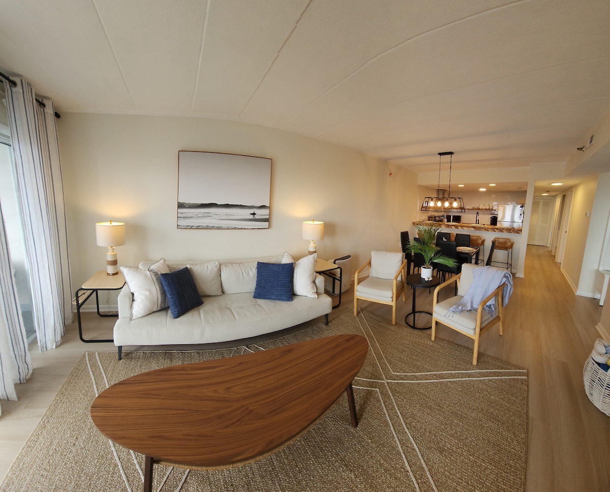 Nádherný apartmán na pláži s přímým výhledem na oceán! Tvůj prázdninový domov daleko od domova! Vše, co potřebujete, přímo na pláži. Veškeré ložní prádlo, zásoby a dobře zásobená kuchyň! Nová 65" TV s bezplatným 4K Netflixem! Moderní klidný dekor v srdci Orange County! Chceš se dostat ven? Užijte si Seacrets, Mackey's, Fager's Island, Subway, Candy Kitchen nebo Dumsers' Dairyland v dosahu chůze! Více dobrodružství? Projděte se na minigolf, pontonové lodě a pronájem vodních skútrů! Pouze 4 minuty jízdy na promenádu!!