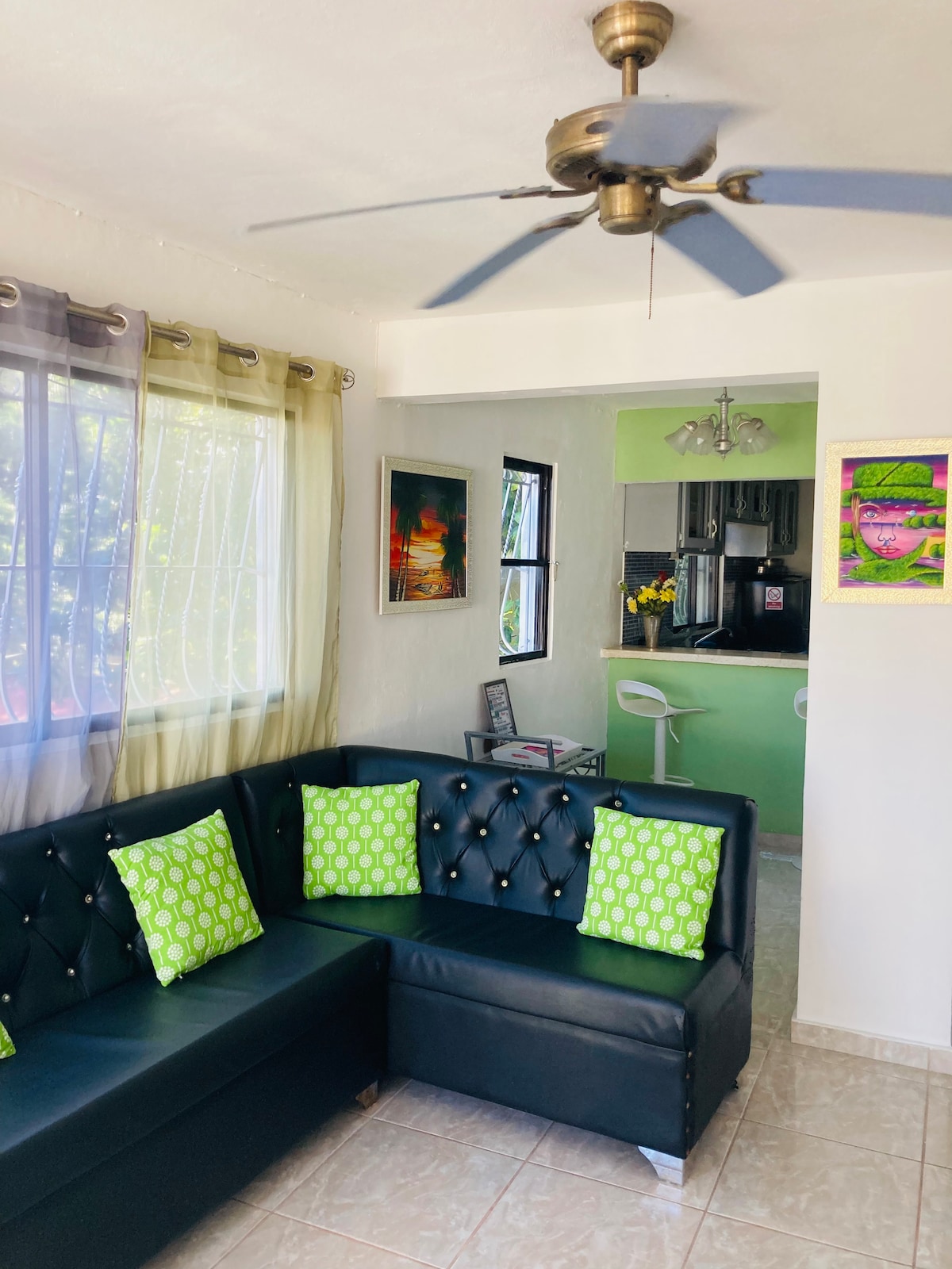Krásný a pohodlný byt se nachází v docházkové vzdálenosti od Ocean World v Puerto Plata, Dominikánská republika. Tento apartmán se dvěma ložnicemi má celkem 6 lůžek a nachází se uvnitř soukromé vily. Denní úklid na požádání a za příplatek. K dispozici je jeden bezpečnostní pracovník, který je tam 24 hodin denně a několik venkovních bezpečnostních kamer před vilou a bazénem. Nachází se jen pár kroků od pláže Cofresi, restaurací a známého vodního parku a akvária Ocean World.