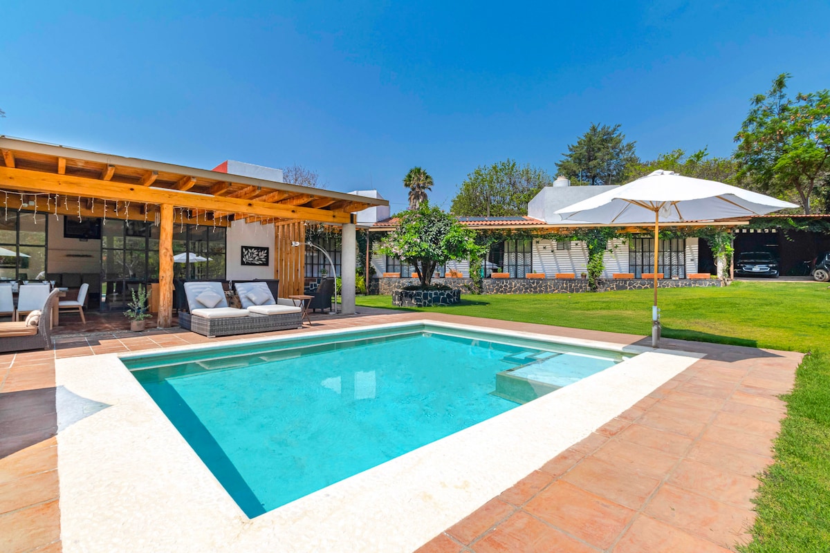 Rezervuj přes HostPal toto exkluzivní ubytování; jsme zkušení hostitelé a naším cílem je, aby byl tvůj pobyt jedinečný a bezkonkurenční. *Nachází se v klidném kondominiu 5 minut od centra Malinalca. *Vybavení, jako je vyhřívaný bazén, vířivka, zahrada, ohniště, gril a další. *Ideální pro hluboký odpočinek a absolutní relaxaci. *Internet a parkování, takže je snadné zůstat ve spojení a prozkoumat okolí. *Domácí mazlíčci vítáni. *Servisní personál v ceně.