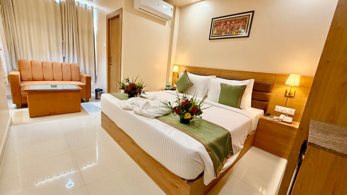 Vítej v Bibek Residency, kde najdeš trojlůžkový pokoj Deluxe (3P) – dokonalý, prvotřídní a praktický! Ideálně umístěný v Ashok Nagar, pouhé 3 km od letiště Biju Patnaik a 1 km od vlakového nádraží Bhubaneswar, nabízí postel velikosti king, samostatnou postel, sedací soupravu, jídelní kout, koupelnu a balkon – ideální pro čtyřčlennou rodinu hledající pohodlí, komfort a styl v srdci města.