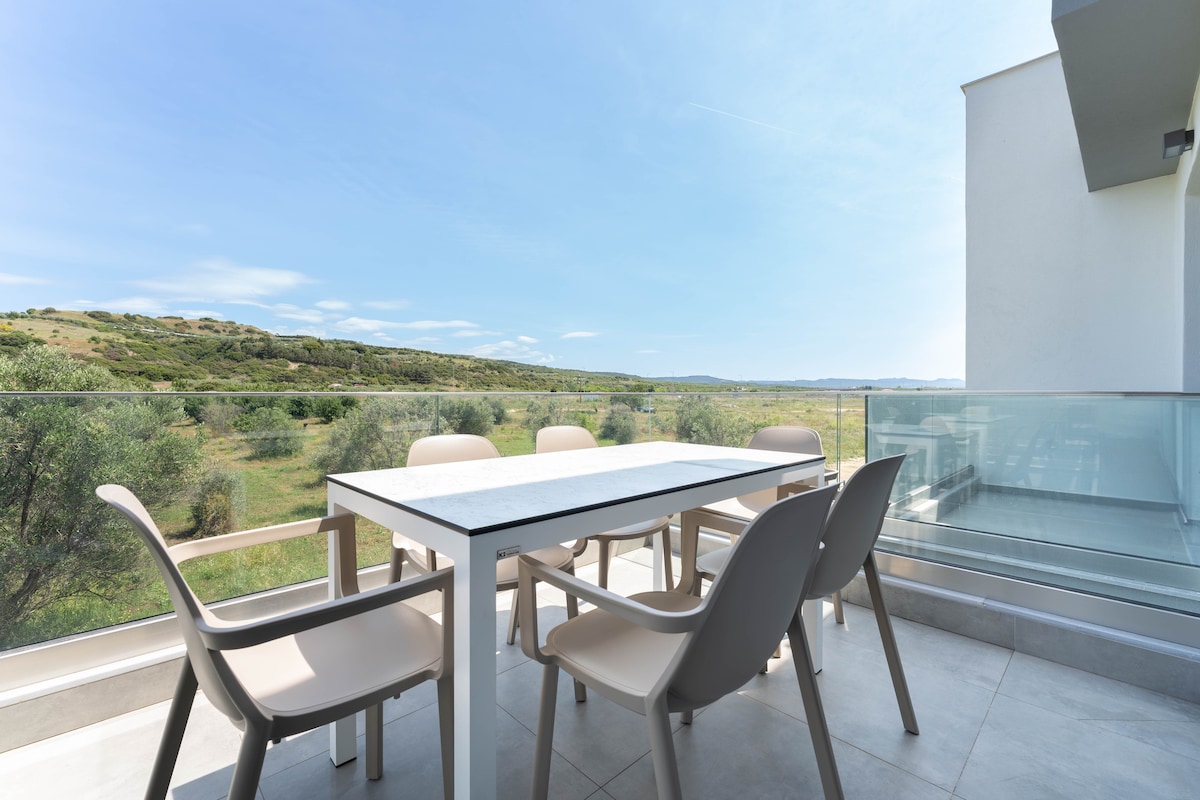 Vychutnejte si nádherný výhled, relaxujte v tomto klidném a elegantním prostoru, sledujte západ slunce nad mořem z prostorného balkonu... Nádherné místo v olivovém háji, se zahradou... a mořem na dosah ruky.