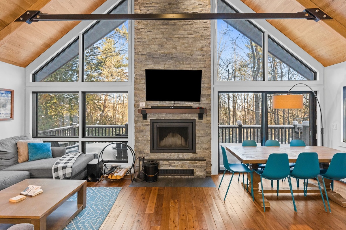 Vítej v Okemo A-Frame! S nadměrnou terasou s venkovním stolováním, barelovou saunou a vířivkou si užiješ přírodu po celý rok. Vstup do otevřené jídelny, kuchyně a obývacího pokoje se stylovým krbem z poloviny století. Odpočiň si v jedné ze tří ložnic nebo se pohodlně usaď na vnitřní podlaze houpací sítě. Nachází se 10 minut od horského střediska Okemo a města Ludlow, kde si můžeš užít lyžování, nákupy, stravování a vše, co Vermont nabízí.
