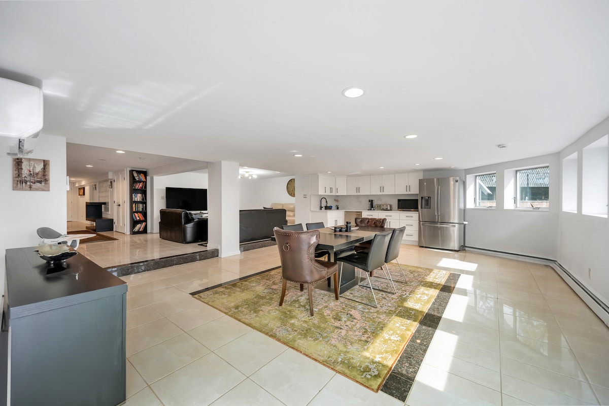 Dvoupokojový byt v bezpečné čtvrti. 2 manželské postele a 2 nafukovací matrace. Ručníky a povlečení navíc. Spousta prostoru s přístupem do kuchyně, pračky/sušičky (nejsou sdíleny s nikým jiným), prostorný obývací pokoj a jídelna. Budete mít vlastní vchod. V blízkosti mnoha atrakcí, 25 minut od letiště JFK, rychlá jízda vlakem nebo autem do New Yorku a v blízkosti pláže! Všechny druhy rychlého občerstvení a vynikající restaurace v okolí! Byt je ve vynikajícím stavu, dezinfikovaný a čistý ve skvělém prostředí.