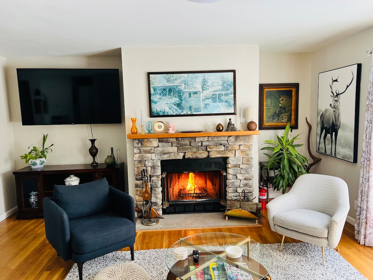 Multi-level forest villa retreat in the Gunks, perfect for wellness escapes, creative retreats, or group getaways. Enjoy a private yoga studio, 110" home theater, EV charger, handmade furnishings, Casper and Nectar premium mattresses, and inspiring original art. Surrounded by forest with decks, private nooks, and cozy lounges, this beautifully designed home blends boutique comfort with spacious indoor-outdoor flow.