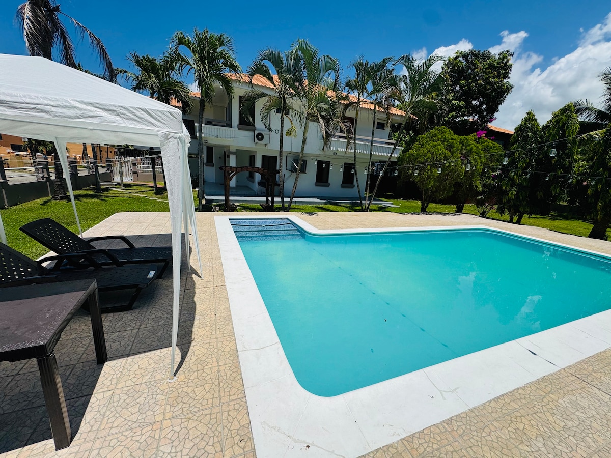 Pokud hledáte domov daleko od domova, podívejte se na tento prostorný dům s bazénem a grilovacím prostorem (gril na dřevěné uhlí, dřevěné uhlí není součástí dodávky), kde si můžete užít čas s rodinou a přáteli. Tento krásný dům na pláži se nachází v soukromé rezidenční oblasti (Residencial Marbella) s přístupem na pláž v Omoa, Cortés, přibližně 70 km od San Pedro Sula, Honduras. Dům se nachází v centru, v blízkosti supermarketů, restaurací, čerpacích stanic a turistických atrakcí.