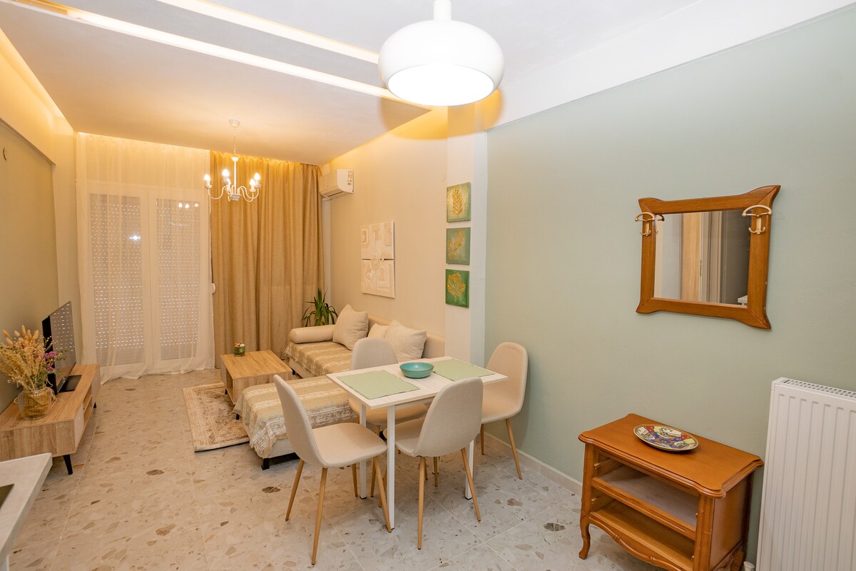Užijte si relaxační pobyt v našem zrekonstruovaném (2024) stylovém apartmánu na okraji centra Soluně. The flat is within walking distance (10-15min on foot) to some of the most famous areas of the city. -1 km do čtvrti Ladadika (místní taverny, restaurace, hospody a kluby) – 1,2 km od nábřeží – 1,5 km od Aristotelova náměstí (hlavní náměstí města) - 350 m na hlavní nádraží/stanici metra (New Railway Station - Νέος Σιδ. Σταθμός)/autobusová zastávka X1 z/na letiště