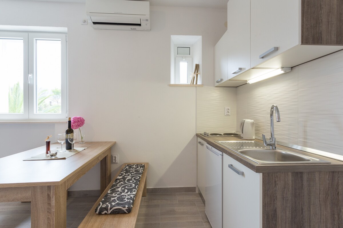 Je to krásný apartmán v přírodní rezervaci Mali Ston Bay, s veškerým pohodlím, které si můžete přát! Byt je nový, s jednou manželskou postelí a obývací pokoj se skládá z rozkládací pohovky, která se dá přeměnit na pohodlnou manželskou postel. Byt je klimatizovaný s bezplatnou Wi-Fi a TV. Kuchyně je plně vybavena všemi nezbytnostmi potřebnými pro vaše vlastní domácí jídlo.