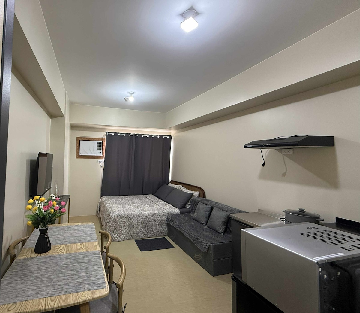 Užij si zážitek ve stylu Stockholmu v tomto zbrusu novém 23 m² studiu v Avida Aspira, Cagayan de Oro City. Prostor je navržen ve švédském minimalistickém stylu a nabízí útulnou postel pro dvě osoby, flexibilní pracovní a jídelní kout, elegantní kuchyň pro lehké vaření a moderní koupelnu se sprchou s teplou a studenou vodou. Nachází se v centru poblíž nákupních center, kaváren a obchodních center a je dokonalou kombinací stylu, pohodlí a praktičnosti pro páry, sólo cestovatele nebo obchodní hosty.