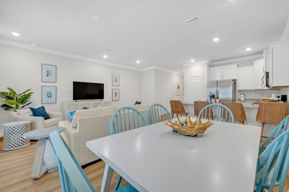 Turquoise Place 2608C is next-level beachside luxury, hanging high above the Gulf with epic views and serious style. This 3-bed, 3-bath stunner brings elegant modern vibes with a splash of coastal chill—think plyush digs, a chef's dream kitchen, and space to kick back. Ale skutečný MVP? Tvůj soukromý balkon s vířivkou a grilem pro grilování při západu slunce. Díky šíleným sezónním výhodám, jako jsou bazény, líná řeka a posilovna, je tohle ten nejlepší surfařský přístřešek v Orange Beach!