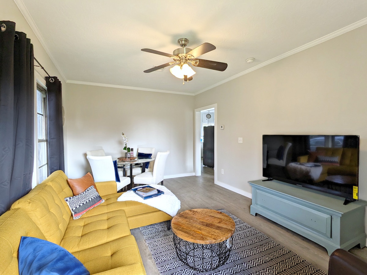 Tento krásný dům se 2 ložnicemi je ideální pro rychlý pobyt, ale může ubytovat každého, kdo potřebuje delší pobyt. Hosté mají přístup do celého domova včetně pračky a sušičky! K dispozici je dlouhá příjezdová cesta s dostatkem místa pro tvé vozidlo/vozidla. Tento dům má vše, co potřebuješ k tomu, aby byl tvůj pobyt v teple a vítán! Dodává se se všemi nezbytnostmi: trouba, mikrovlnná trouba, lednička, plně vybavená kuchyň, 2 manželské postele, jídelna, obývací pokoj s 32palcovou TV, Blu-ray přehrávač s předplatným Hulu, 2 stoly a koupelna.