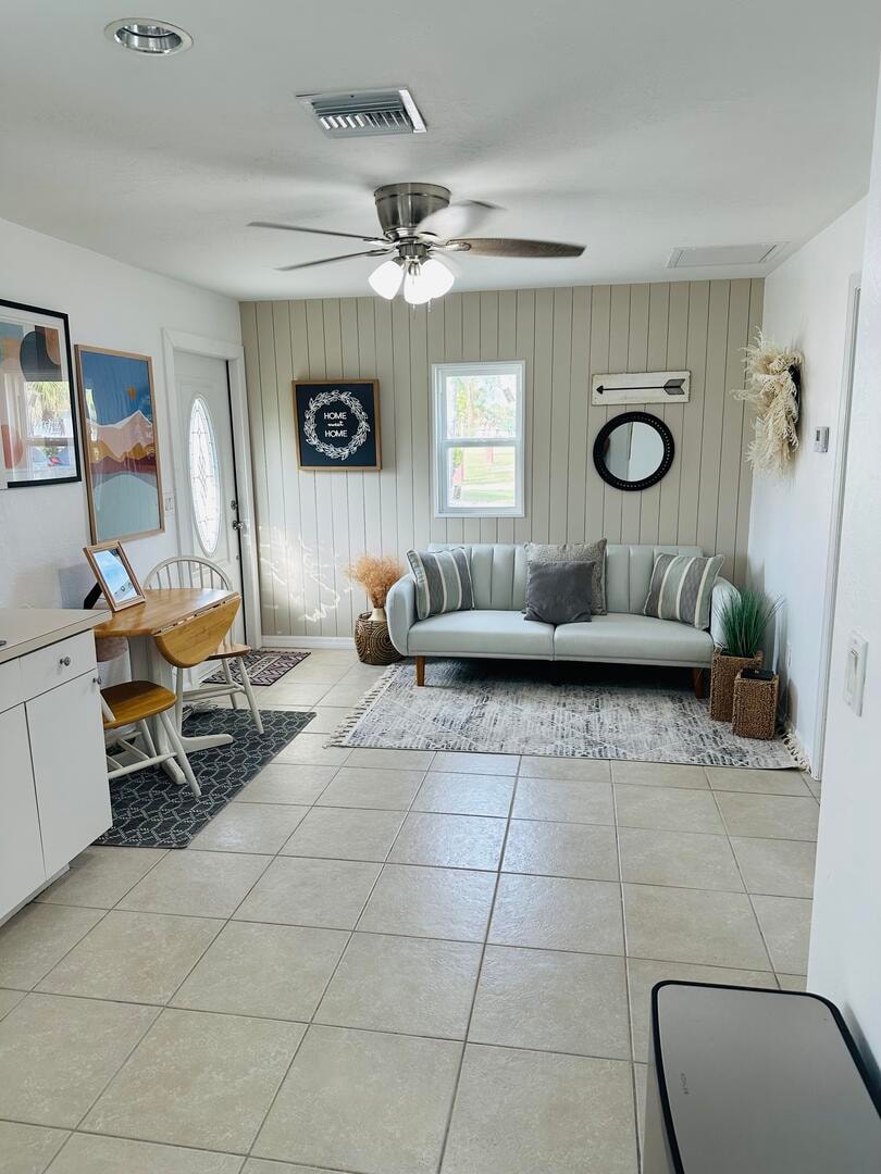 Indulge in Old Florida with our Boho Chic estate combining mid-century modern esthetics with tropical flare. Complete with a whole house Reverse Osmosis system, a heated saltwater pool + spa, a sprawling carefully maintained property with hundreds of mature trees, you can enjoy Florida living in privacy and style. You might even spot some wildlife! You'll have a beautiful master suite, a fully equipped kitchen, a 75" smart TV, several dedicated desks, a Weber grill, a fire pit, and more.