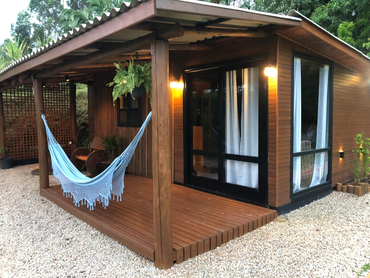 V blízkosti SERRA DO RIO DO RASTRO. Dřevěná chata obklopená stromy a květinami, v blízkosti krásné řeky. Kde se můžete probudit za zpěvu ptáků. Ideální chata pro páry, které hledají klid, exkluzivitu a soukromí. Při relaxaci ve vířivce během dne slunce vstupuje skleněným otvorem a přináší pocit útulnosti a tepla, s výhledem na zahradu a kolibříky, kteří se obvykle objevují na ošetřovateli. Všechny kohoutky s teplou vodou, plynové topení.