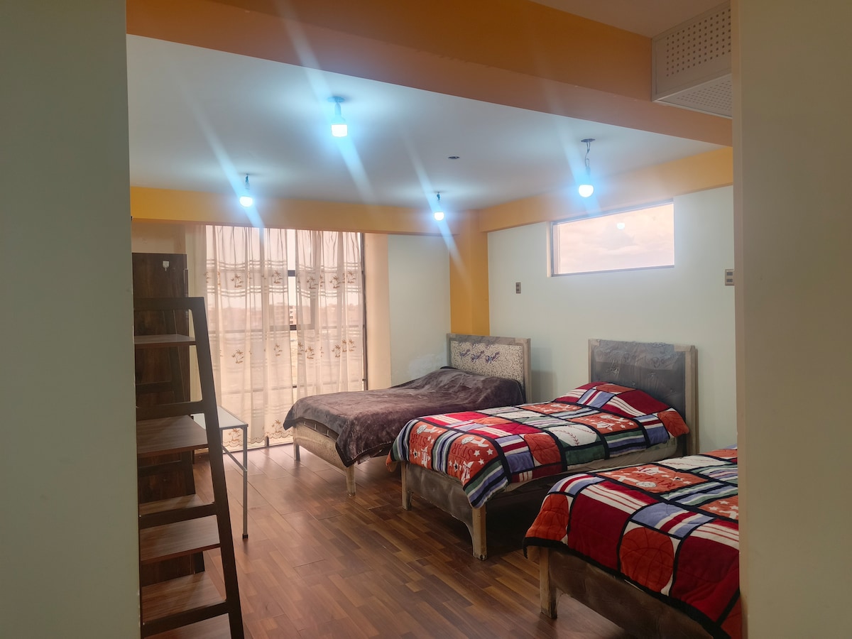 está a una cuadra de la terminal de buses oruro, cuenta con agua caliente y ascensor y un hambiente confortable