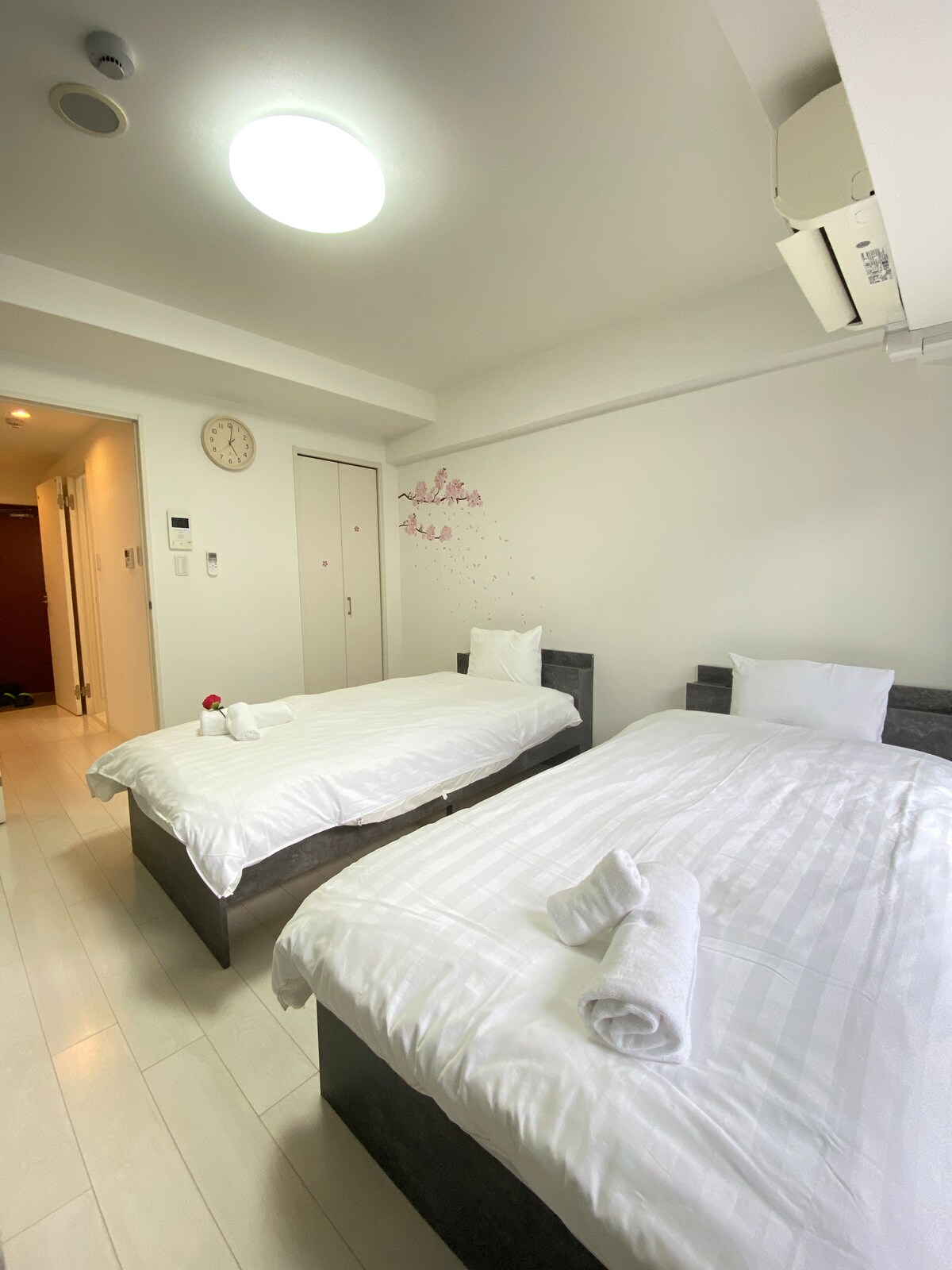 This newly built apartment is located right next to Nihonbashi Shopping Street and a 5-minute walk to the station.V okolí je mnoho restaurací, samoobsluh a obchodů s elektřinou, což je velmi výhodné. Je vybaven soukromou saunou, která ti pomůže si odpočinout od cest. 1. Nově postavený byt, výhodná poloha 2. K dispozici je rychlá wifi 3. Prostorný pokoj 4. Pohodlný prostor s dvojitými plamennými závěsy, které mají vynikající blokující světlo, izolaci a zvukovou izolaci 5. Podpořte pohodlný spánek na matraci značky N-sleep 6. Plně vybavené: Kuchyně, mikrovlnná trouba, lednice, pračka, rychlovarná konvice, kuchyňské náčiní 7. 43palcová chytrá televize se streamováním pro Netflix, YouTube atd. 8. Soukromá sauna * Hlavní kuchyňské náčiní, hrnce, misky a nože jsou k dispozici, ale z hygienických důvodů si budeš muset připravit vlastní koření. Užij si toto pohodlí a pohodlí naplno se svou rodinou.