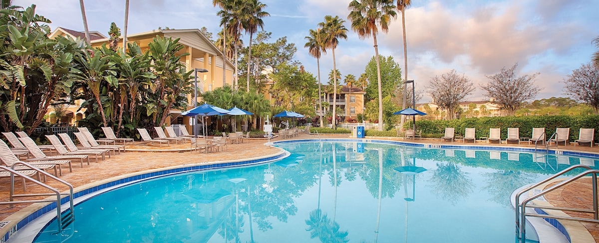 Luxurius suites in Kissimmee just minutes from Orlando's theme parks, restaurants and outlets. At the resort, you can relax in one of 7 heated pools or 7 hot tubs, meander through 3 natures trails, or kick back at 22 barbecue grills in the resort's picnic areas. The resort also has a fitness center, children's playground and shuttle service to the theme parks!