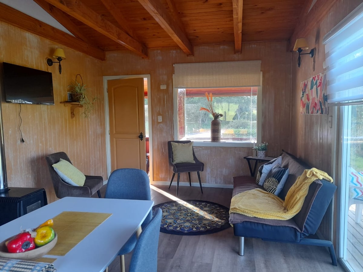 Escápate a la naturaleza en esta acogedora cabaña a pasos del río Rahue Disfruta la tranquilidad del campo en esta cabaña nueva, perfecta para desconectarte y respirar aire puro. Ubicada a solo 13 km de Osorno, combina la paz del entorno rural con la cercanía a la ciudad. Despierta con el canto de los pájaros,camina hasta el río en solo minutos y relájate en un ambiente rodeado de naturaleza. Ideal para parejas, familias pequeñas o viajeros que buscan una experiencia auténtica y reconfortante.