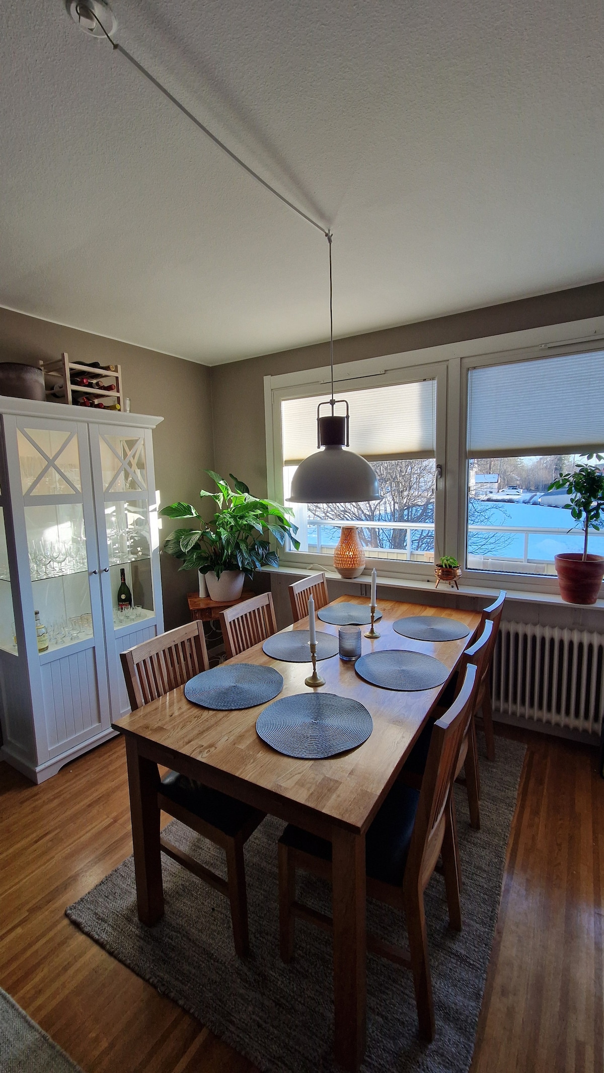 Nyrenoverad och smakfullt inredd lägenhet i sekelskifteshus. Här har du närhet till city, vackra naturstigar, skridskobana, skidspår på sjön. 10 minuters bilväg till flygplatsen och 2,5 km in till centrum via bil, cykel eller fina promenadstråk. Kostnad tillkommer för elbilsladdning (typ 2 kontakt 16A), handdukar och sängkläder. Städning utförs av hyresgäst innan utcheckning. Städutrustning finns att tillgå. Permantet boende värdfamilj bor på övervåning men har separat ingång. Väl mött.