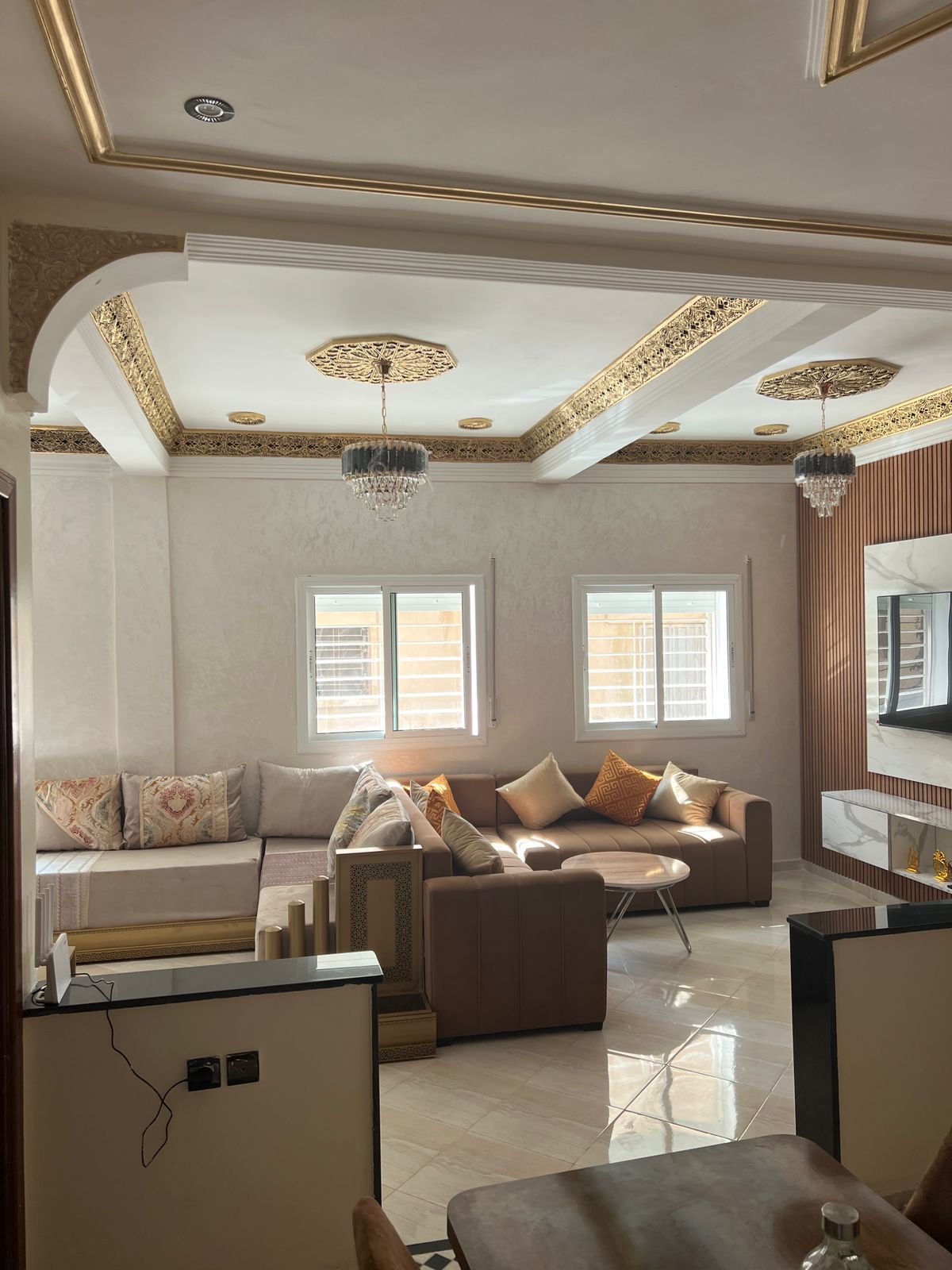 Tento apartmán se nachází v Oulad Tayeb (Immouzer road), jen 5 minut od letiště a 10 minut od centra Fezu, v blízkosti kavárny-restaurace AR. Zahrnuje hlavní ložnici, ložnici se dvěma lůžky, velký obývací pokoj kombinující marocký a moderní styl s chytrým televizorem a Wi-Fi, jídelnu, kuchyň vybavenou lednicí, pračkou, digestoří a elektrickou troubou, stejně jako moderní koupelnu.