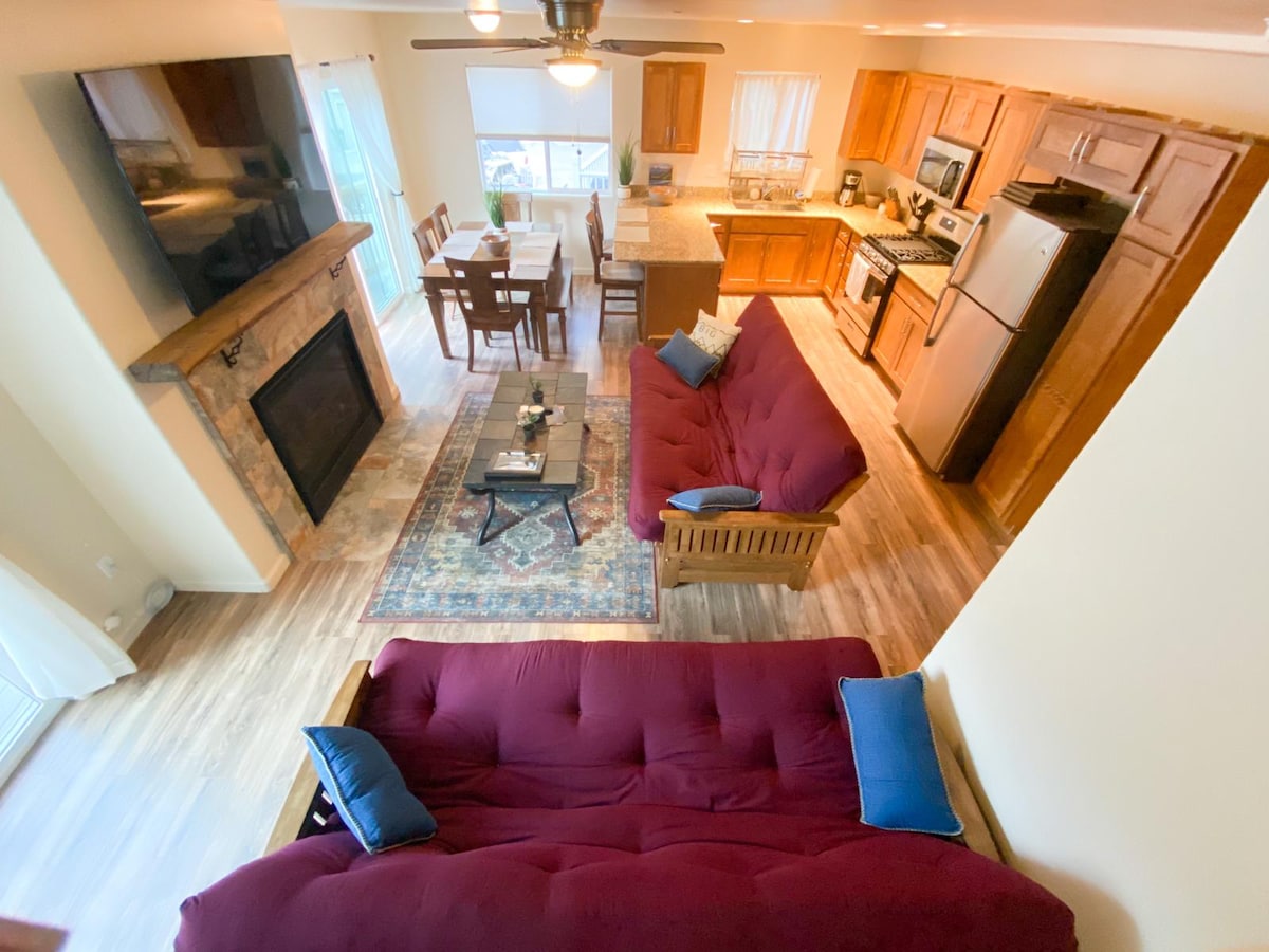 This beautiful Ouray Condo is conveniently located one block from Main Street yet very quiet! Jen pár kroků od obchodů, restaurací, stezky Perimeter a světoznámého Ice Parku! Asi hodinu jízdy do Telluride. Aktualizované a stylové s vylepšenou manželskou postelí King, rozkládací pohovkou z paměťové pěny, plně vybavené kuchyňské spotřebiče s fritézou! Byt je ideální pro páry, sólo dobrodruhy a rodiny/skupiny 4 osob, které hledají místo k odpočinku. Užij si houpací křesla nebo si sedni u krbu po skvělých dobrodružstvích.