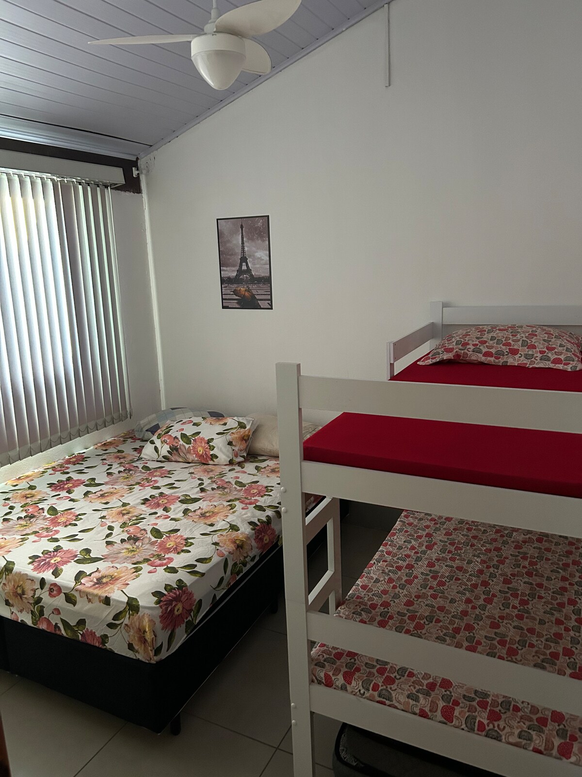 Relaxe com toda a família nesta acomodação tranquila. 1 dormitório com cama de casal e uma beliche, com ventilador de teto. Outro dormitório com uma beliche e ventilador de coluna. Tv smart 32’’ Possui pratos, talheres e copos Panelas, microondas, fogão e geladeira. Sofá Vaga de garagem descoberta Incluso roupa de cama e banho. Piscina não disponível para uso.