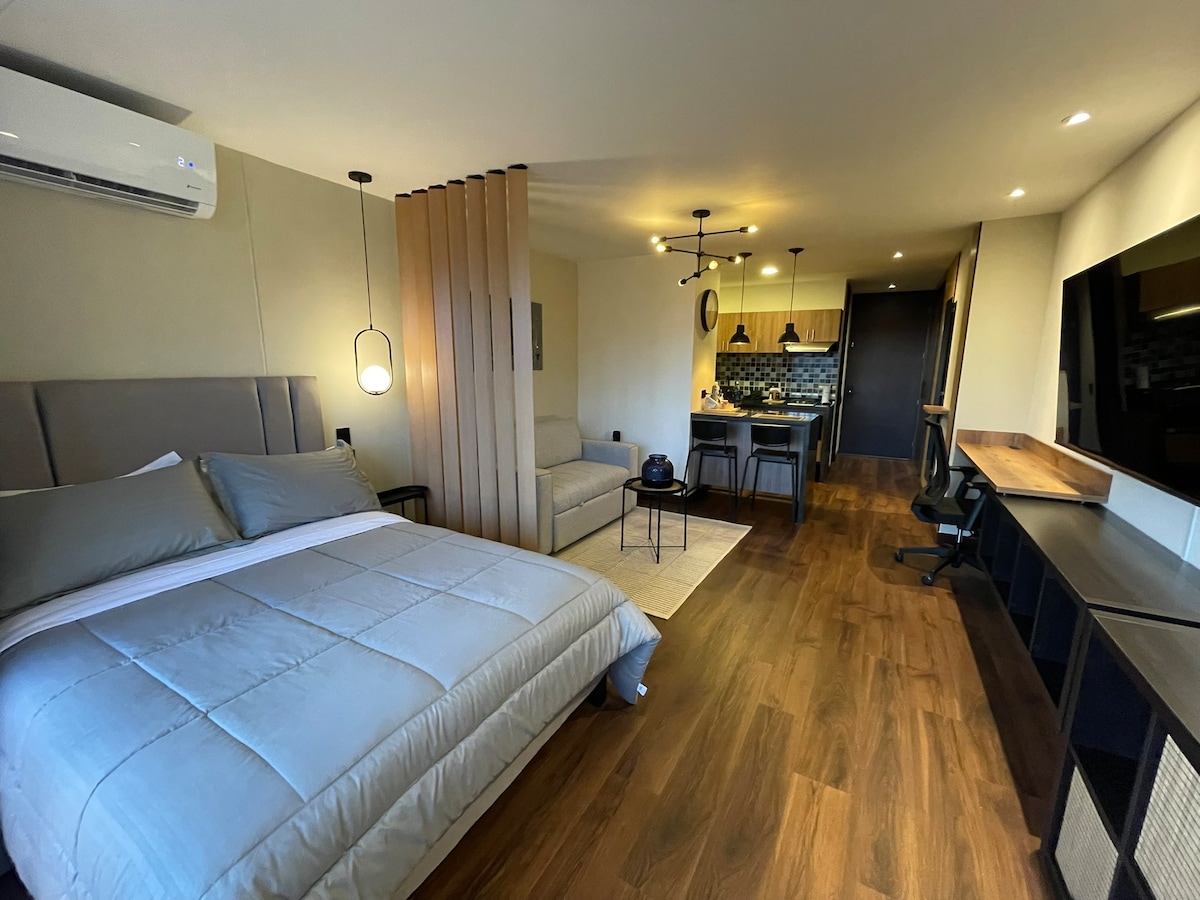 Nově navržený loft v Laureles s klimatizací a Wi-Fi