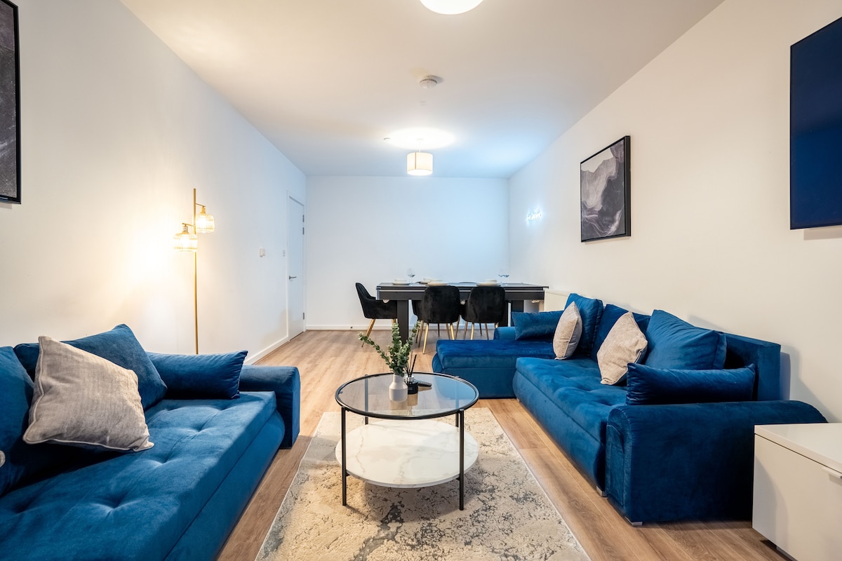 Vítejte v našem stylovém apartmánu se 3 ložnicemi a 2 koupelnami ve Wembley! Toto prostorné útočiště je ideální pro rodiny nebo skupiny a nabízí moderní vybavení a bezplatné parkování na místě. Odpočiň si v útulném obývacím pokoji s chytrým televizorem, připravuj si jídlo v plně vybavené kuchyni a relaxuj v pohodlných ložnicích s vysoce kvalitním ložním prádlem. Nachází se několik minut od stadionu Wembley, SSE Areny a London Designer Outletu, s rychlým dopravním spojením do centra Londýna.