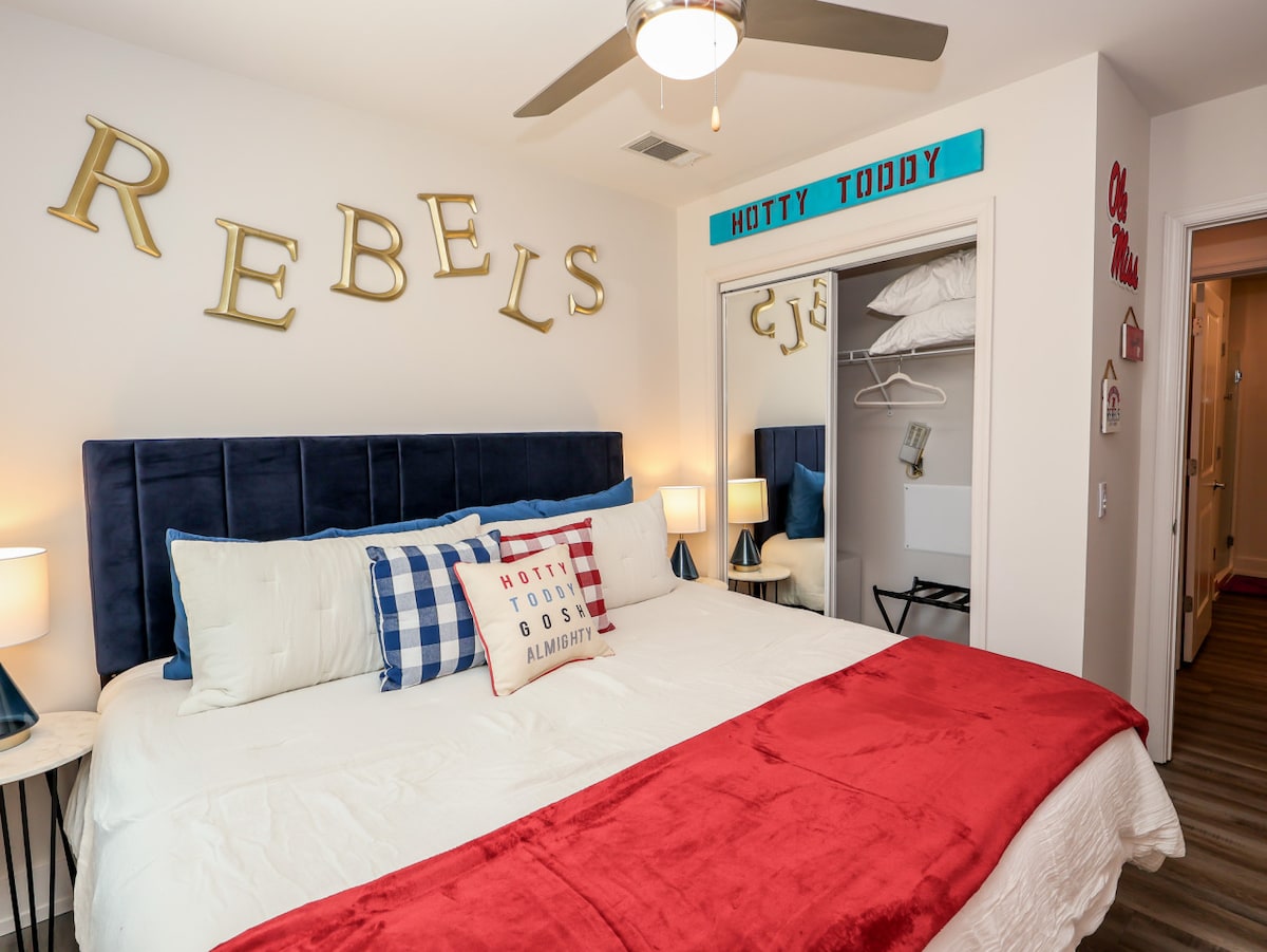 Tento útulný byt se nachází v nejlepší lokalitě hned vedle kampusu Ole Miss. Vše, co potřebuješ pro svůj pobyt, je zde, včetně kuchyně se všemi nezbytnostmi a jídelním koutem. Rodinný pokoj s TV, Netflixem, kabelem a hrami. Každá z ložnic má vlastní toaletní stolek a sdílí koupelnu ve stylu jack-and-jill. Můžete se projít na stadion Vaught-Hemingway, Swayze Field a Grove! Bezplatné parkování u apartmánu. Tento apartmán nabízí řadu vybavení, včetně bazénu, posilovny, tenisových kurtů a sauny! Včetně wifi