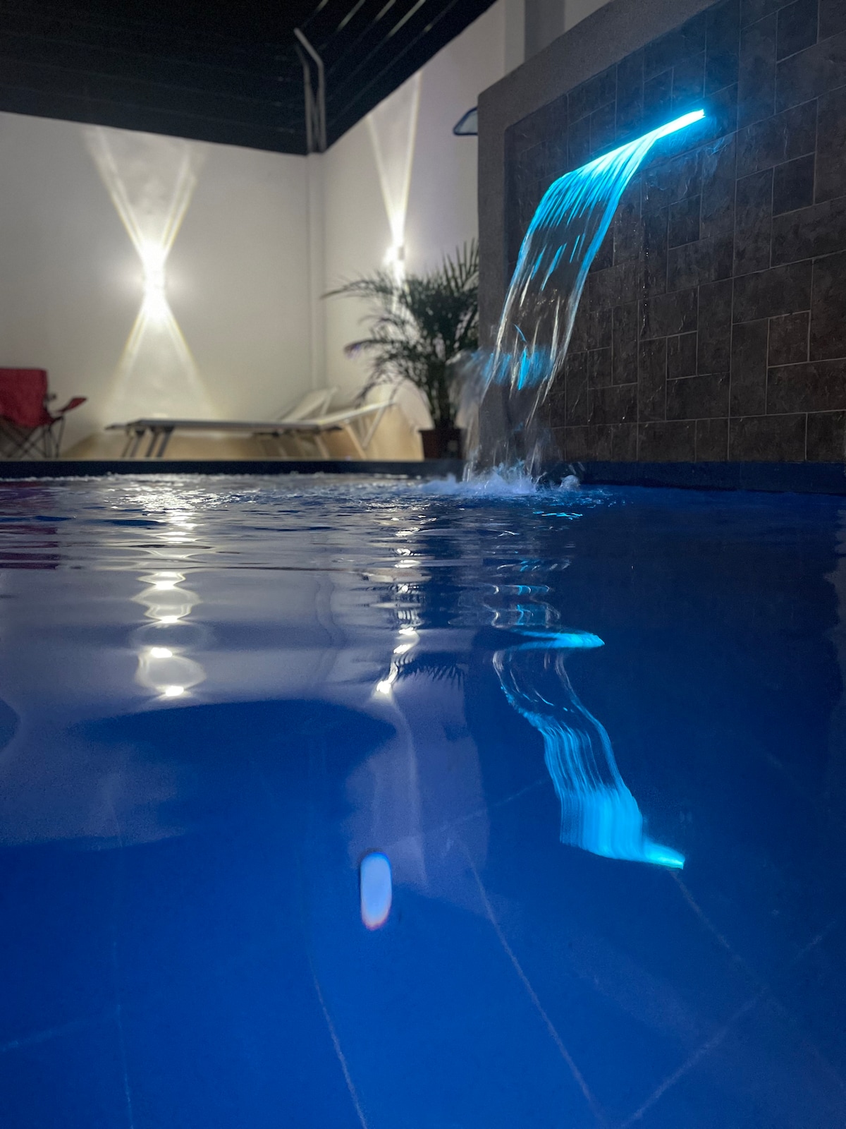 Užij si tento prostorný dům s bazénem, vodopádem a útulnou zahradou. Ideální pro rodiny nebo skupiny, má 3 ložnice s vlastní koupelnou, 1 další pokoj, obývací pokoj, jídelnu a kuchyň vybavenou vyniknou kvalitou, velký gril a mobil. Garáž pro 3 vozidla, bezpečnostní síť a venkovní kamery. Nachází se v klidné oblasti, pouhých 8 minut od pláže San Mateo a sektoru Barbasquillo, ideální pro odpočinek a prohlídku trasy Spondylus.