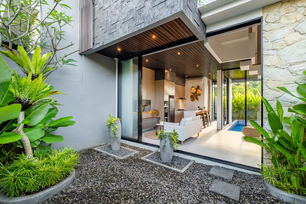 Objev Orchard Villa – stylový středomořský útěk v Binginu se soukromým bazénem, zapuštěným salónkem a plně klimatizovanou posilovnou/jógou/lázeňskou místností s koupelnou. Užijte si dvě ložnice s manželskou postelí, luxusní koupelny, velkou vnitřní kuchyň a přímý přístup k pláži Bingin a lákadlům v Uluwatu. Relaxuj, trénuj nebo si odpočiň při masážích přímo ve své vile ve vlastním soukromém wellness prostoru.