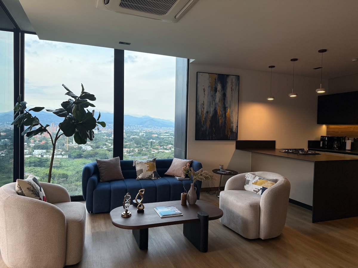 Budova s moderním designem, ze které si můžete užít nejlepší výhled na Cali, má strategickou polohu na severu města: bude velmi snadné naplánovat si návštěvu! V blízkosti letiště, nákupních center a gastronomické zóny. Apartmán s velkým soukromým balkonem s houpací sítí a pohovkou, manželskou postelí, psacím stolem stolem, plně vybavenou kuchyní, pračkou a koupelnou. Terasa s 360° výhledem na město Cali vám umožní vychutnat si vánek a západy slunce v Cali. K dispozici je venkovní sprcha a gril.